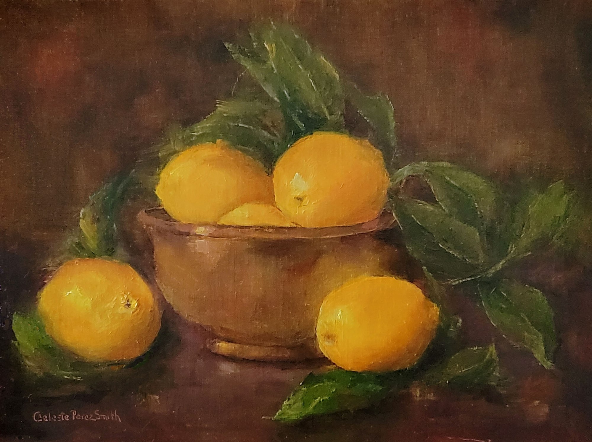 After searching for a lemon tree for months at local nurseries, I finally found one! It was a bout 9 months before my Meyer lemon tree produced its for lemons for me. Painting them was such fun and gratifying! Lemons in Copper Bowl was the first painting of my "home grown" lemons! I'm waiting patiently for a new crop later this year.