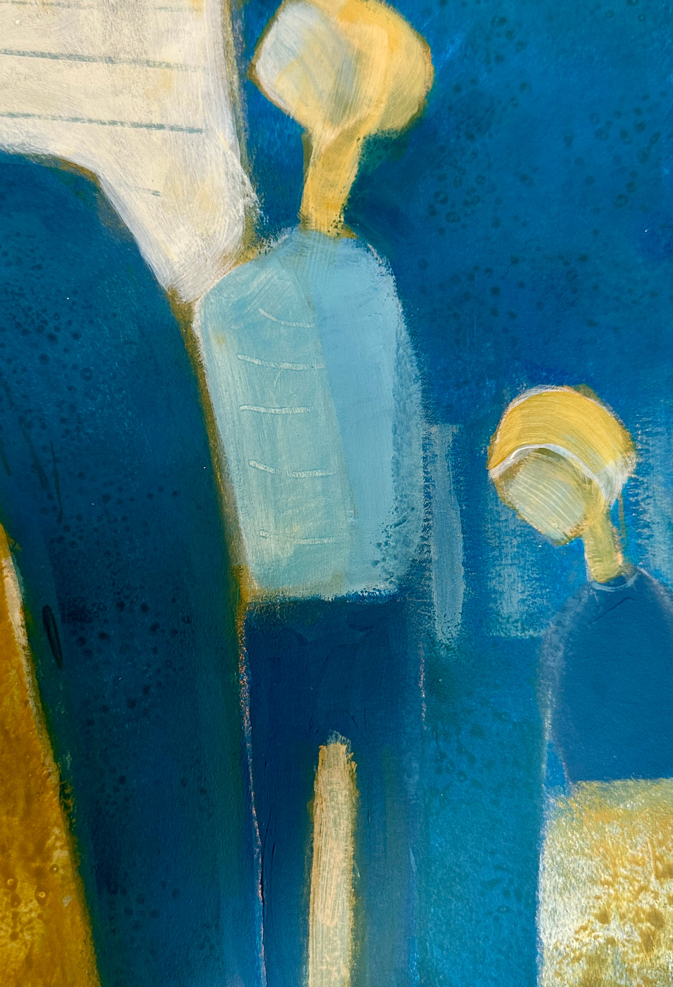 A family are about to... This painting is on A3 paper in an A2 mount ready to frame.
