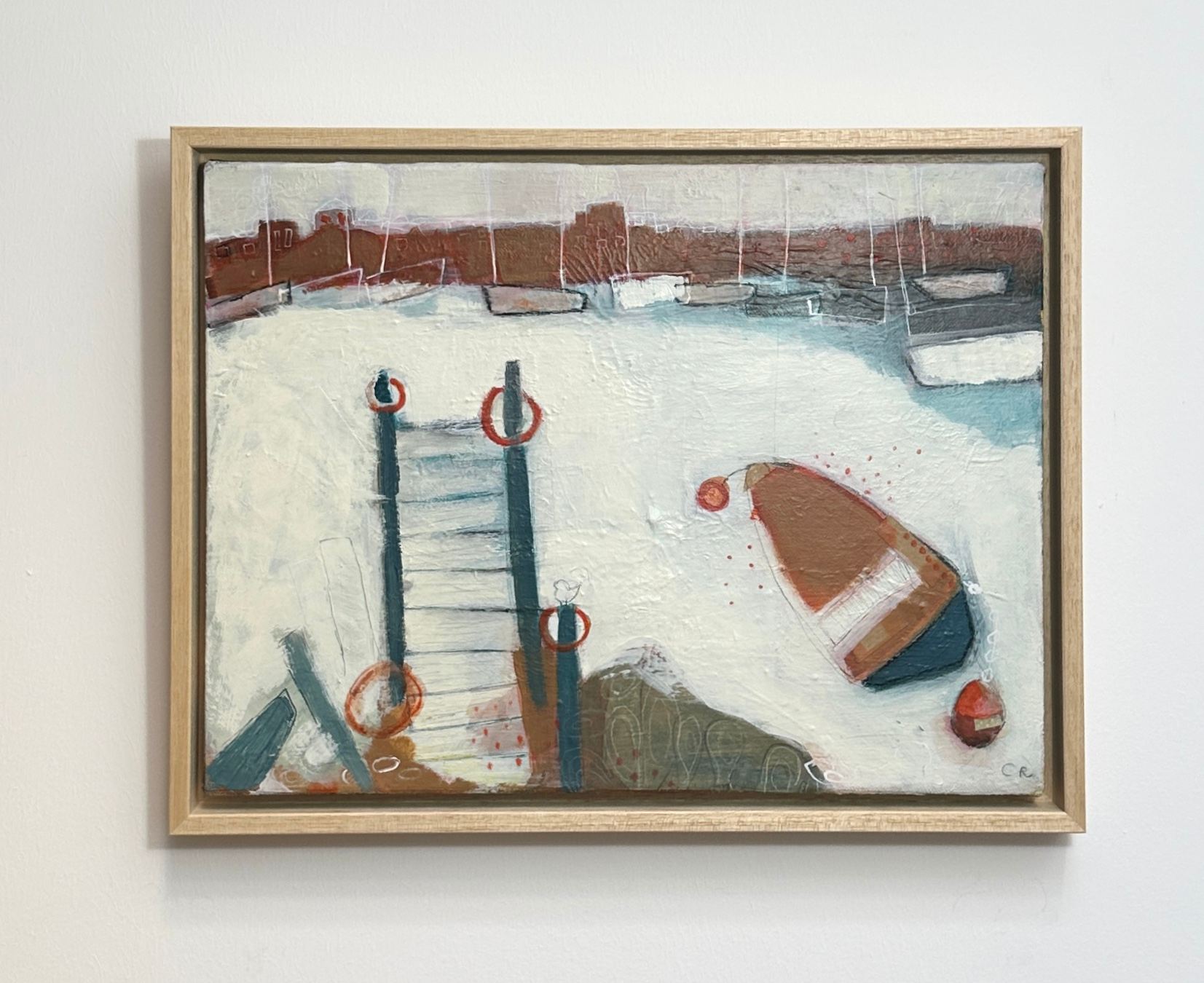 Just some boats bobbing about by the jetty. Highly textured, mixed media on canvas. Ready to hang in a natural Abachi wood frame.