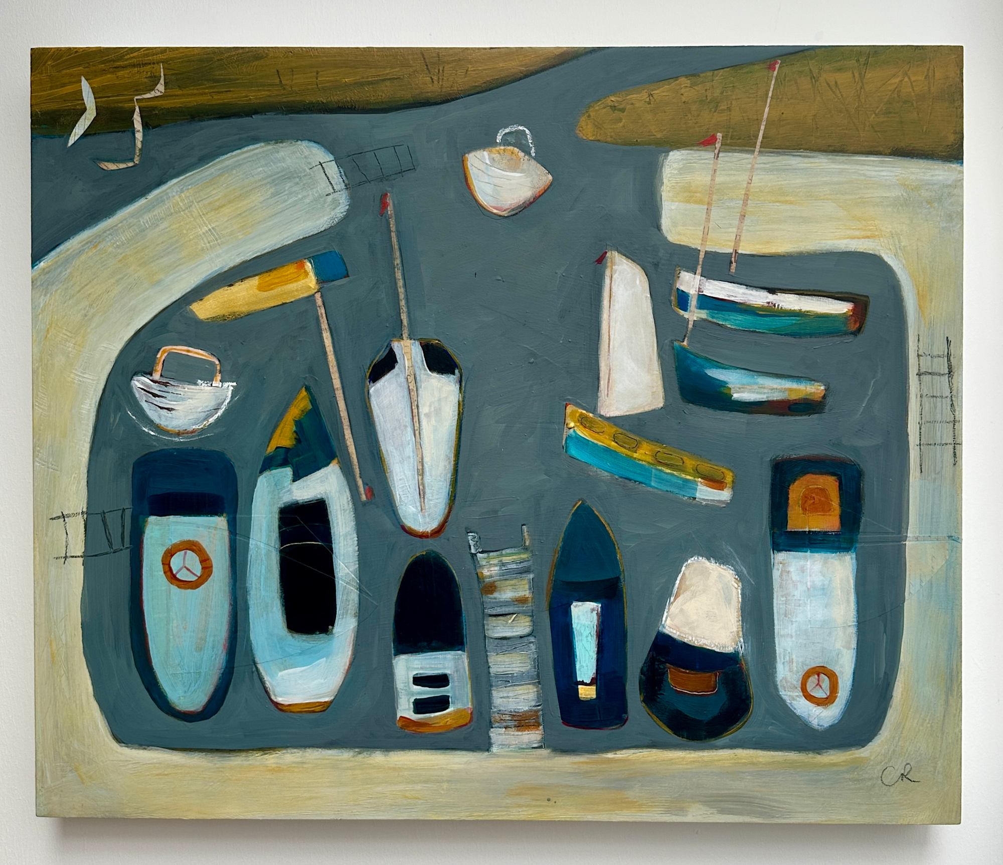 Boats in the Marina, just bobbing about waiting to go on their adventures... This is a mixed media piece on wood ready to hang. It is inspired by the marina where I live in Brightlingsea but painted from my imagination.