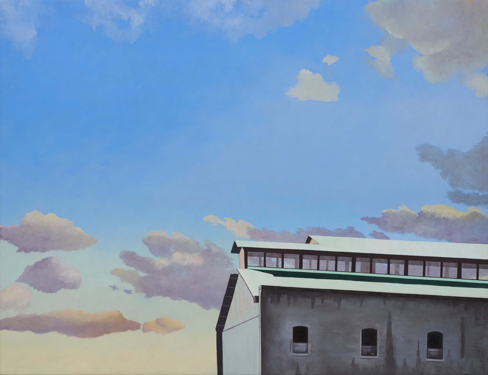 Based on a real sky and a real building, the imagined combination of these two elements creates an imagined, dreamlike space. The clouds linger after a storm, the clarity of the air meeting the disorientation of emerging from dream. This ambiguity is rife with possibility, as nature constantly reminds us.