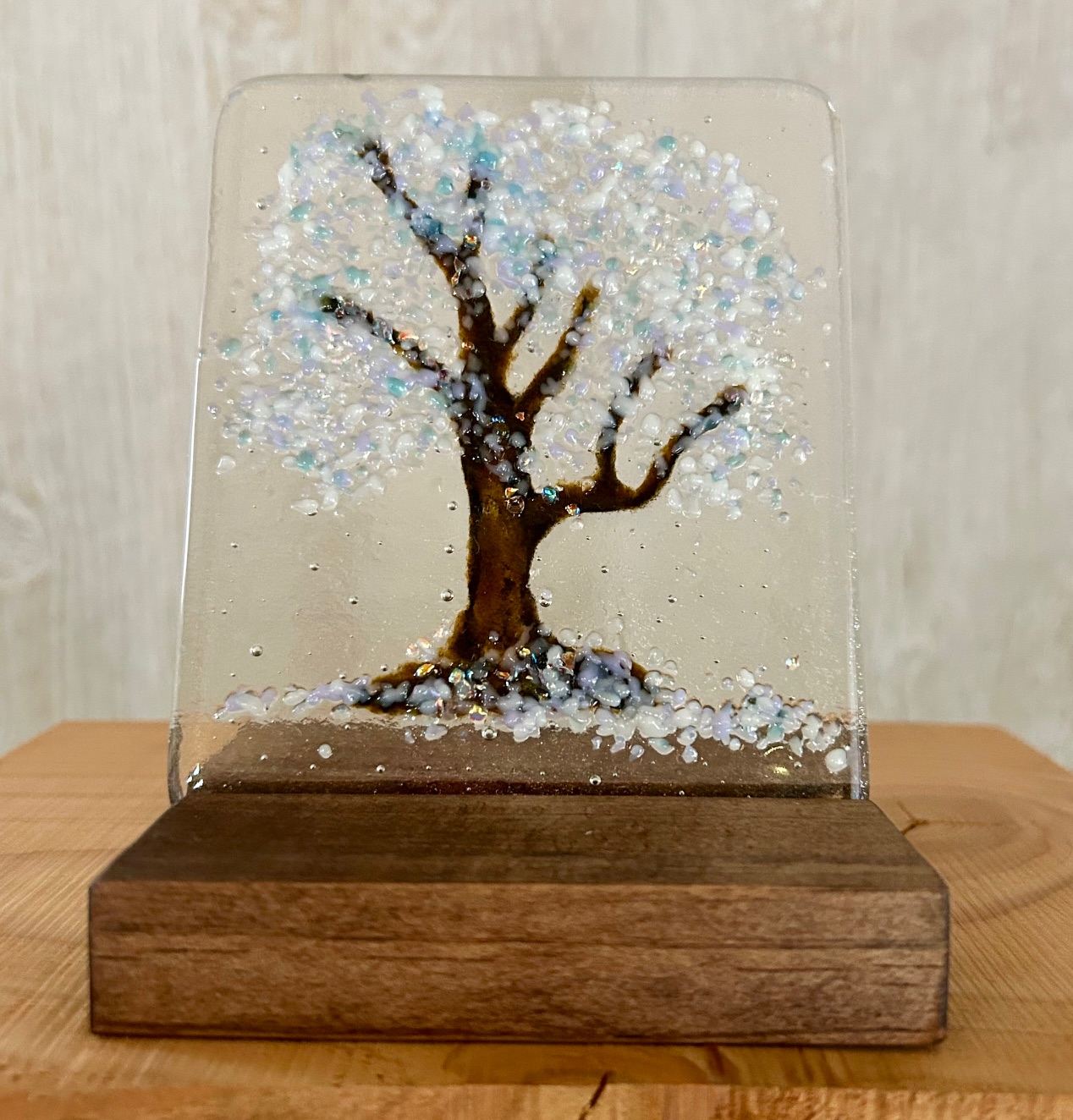 Clear glass on wood