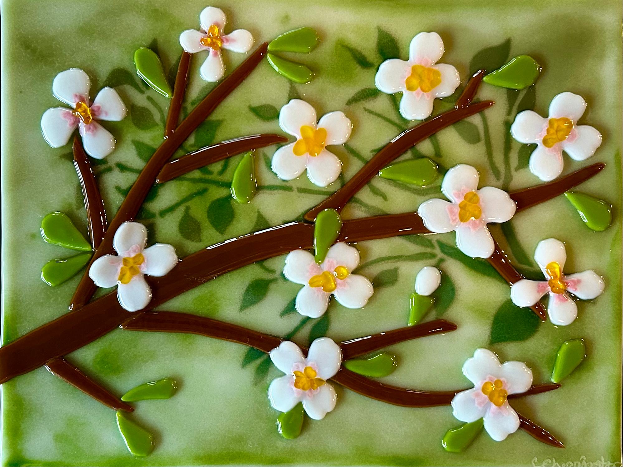Dogwood blooms. Mounted on a wood panel and ready to hang.