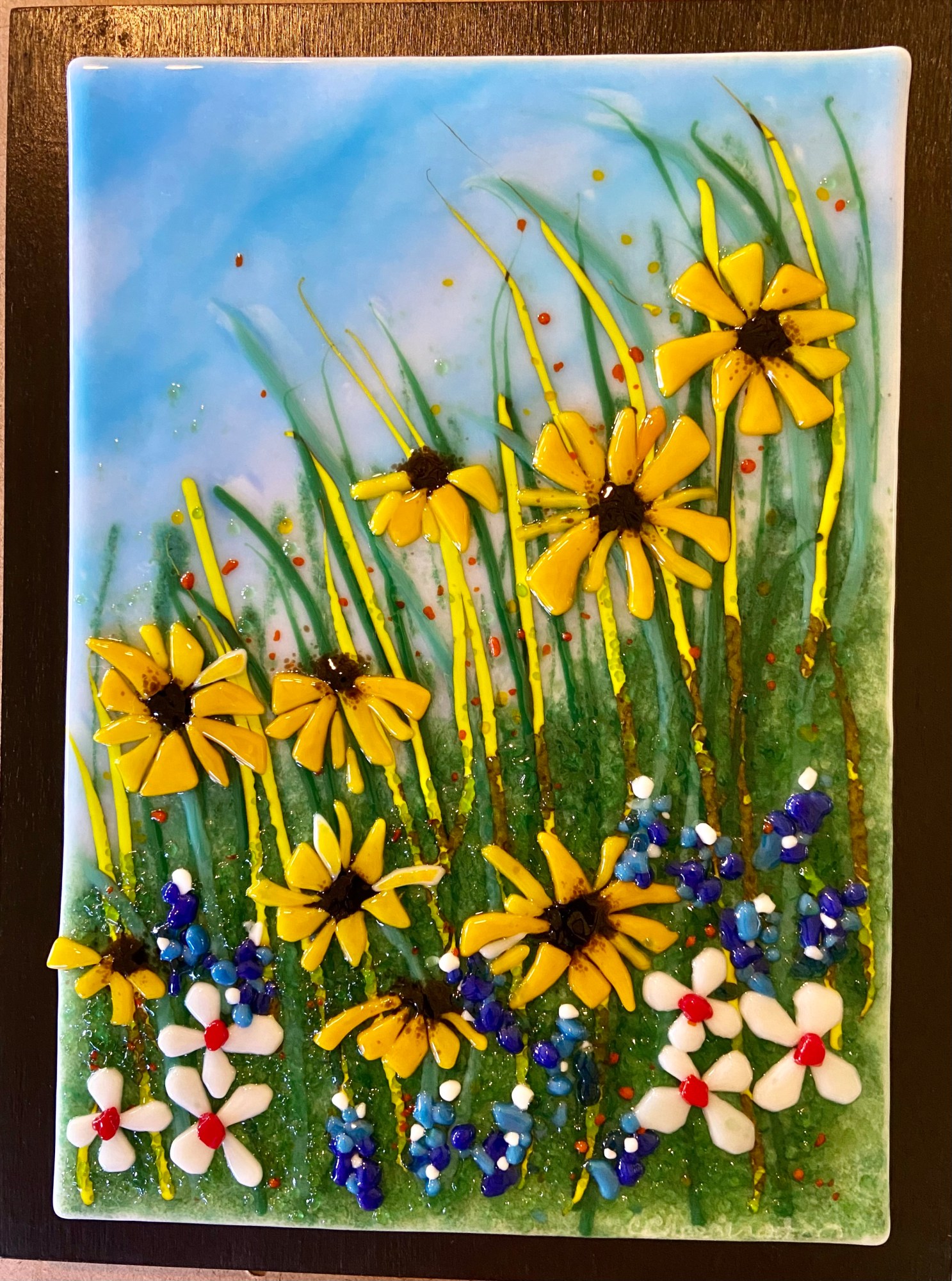• Glass framed on black board
