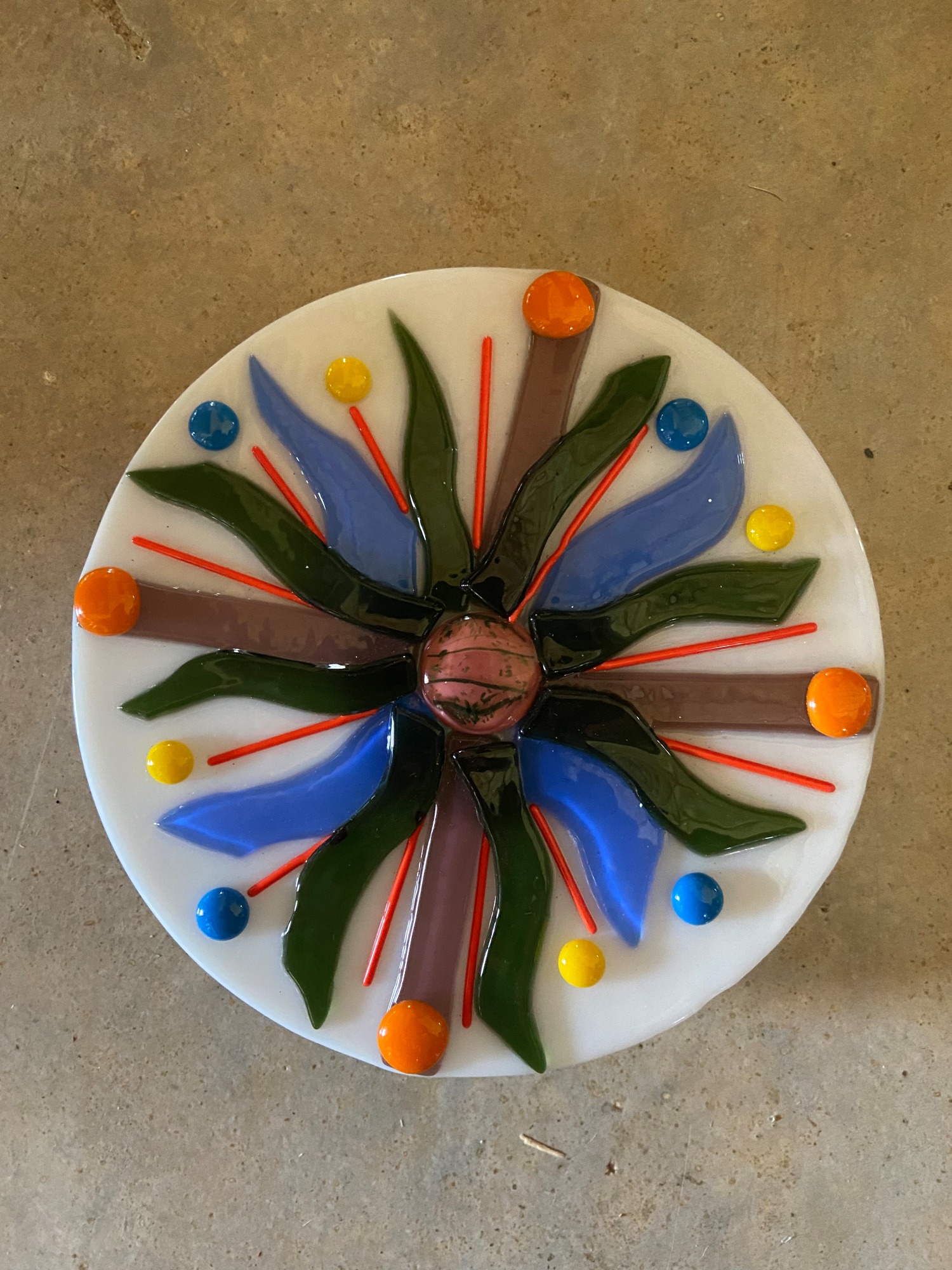 Add a pop of color with this colorful bloom. Mounted to a flat, steel stake.