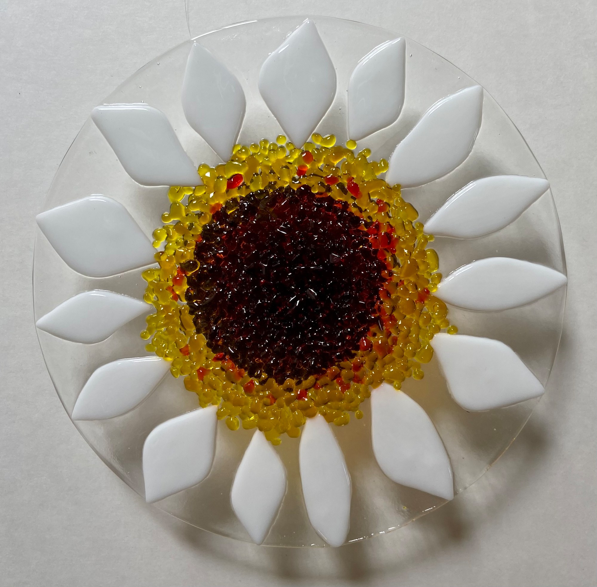 Garden Stake - Flower (clr w/white cobalt jade white center)