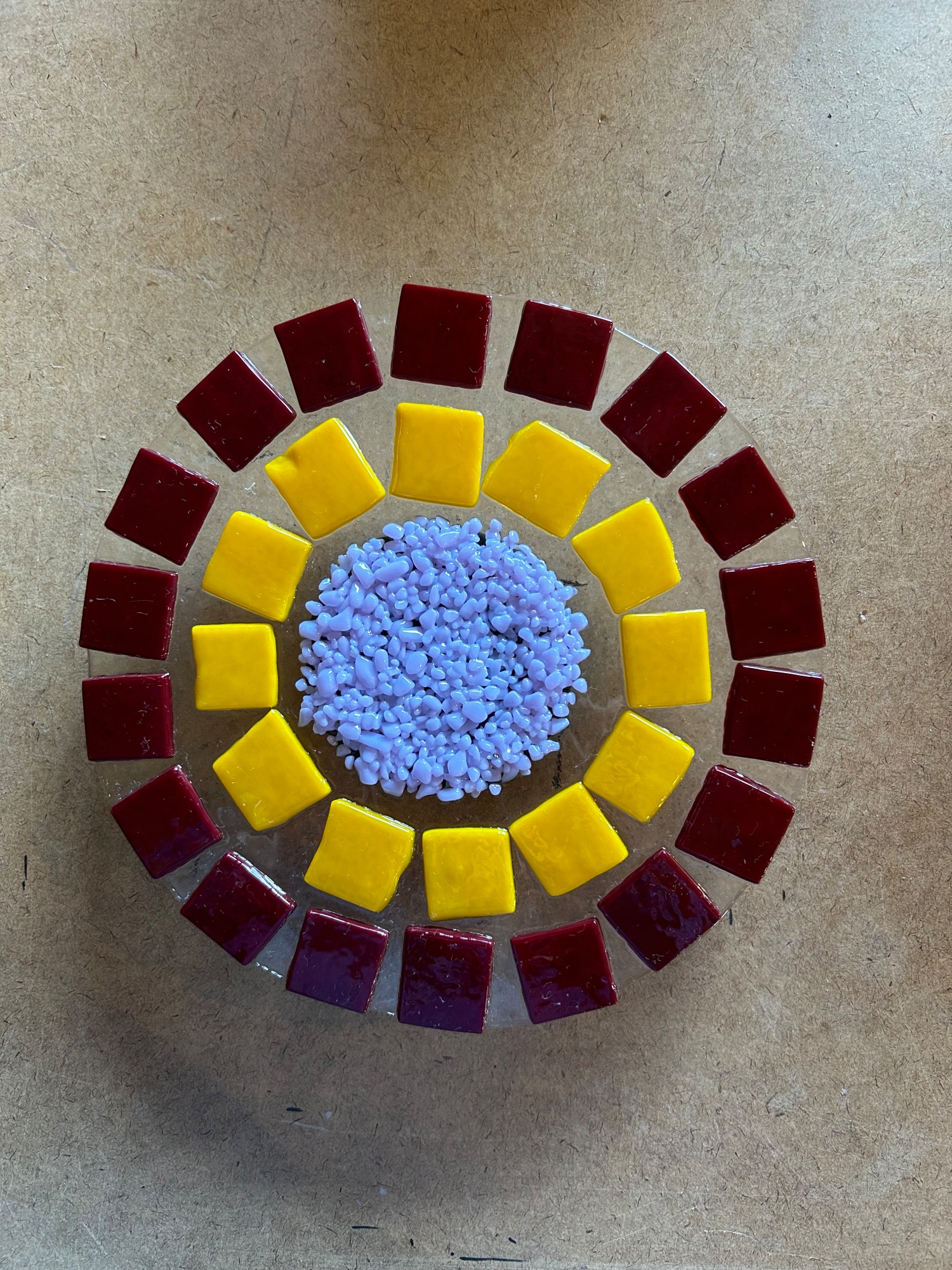 Garden Stake - Flower (on clr, deep red yellow w/lavender cntr)