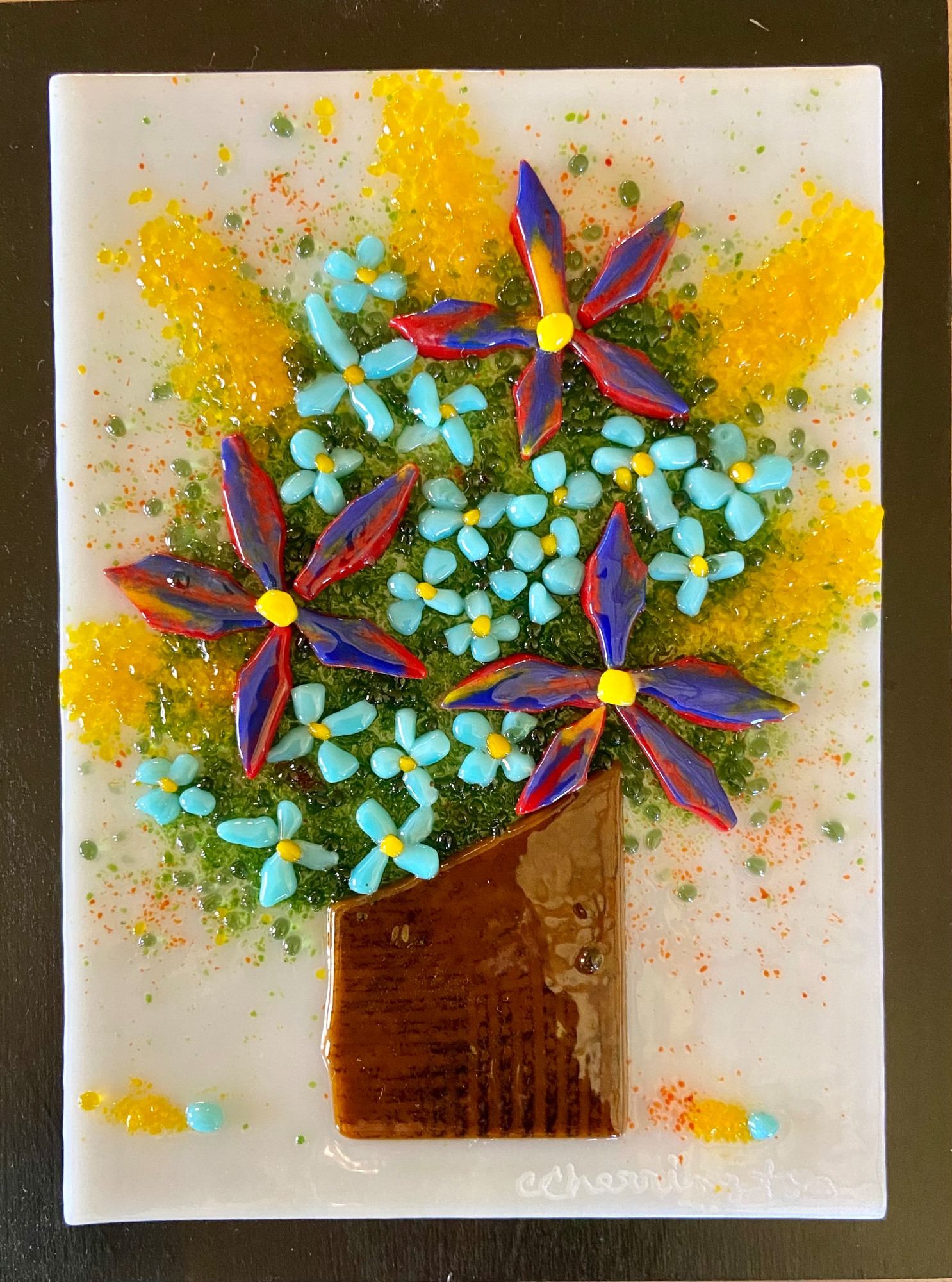 • Glass framed on black board