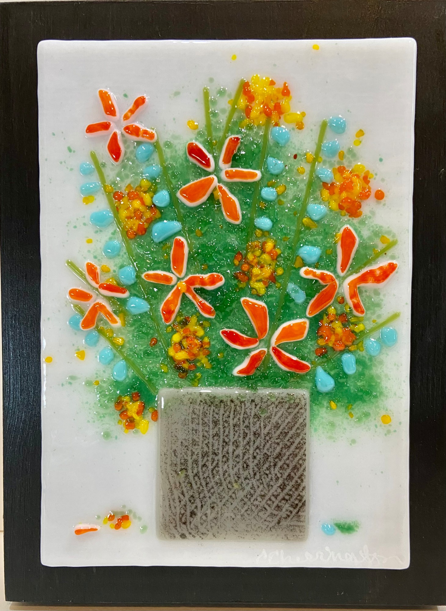 • Glass framed on black board