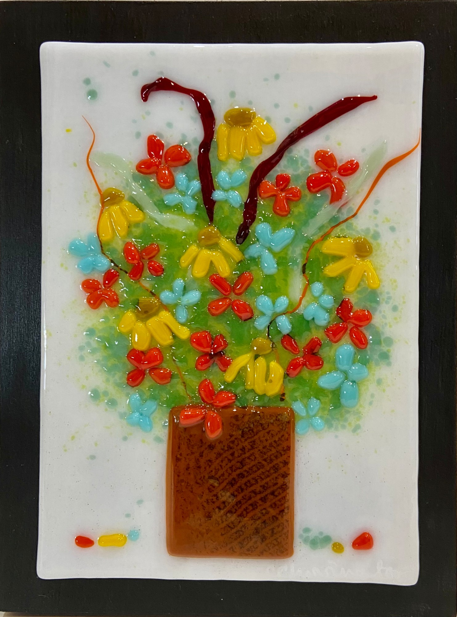 • Glass framed on black board
