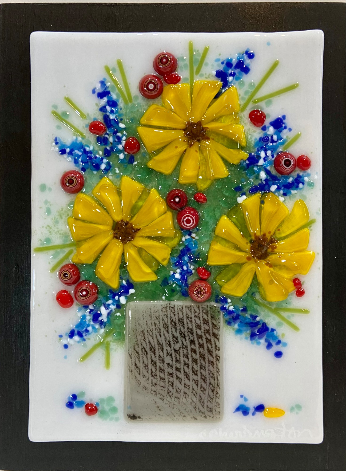 • Glass framed on black board