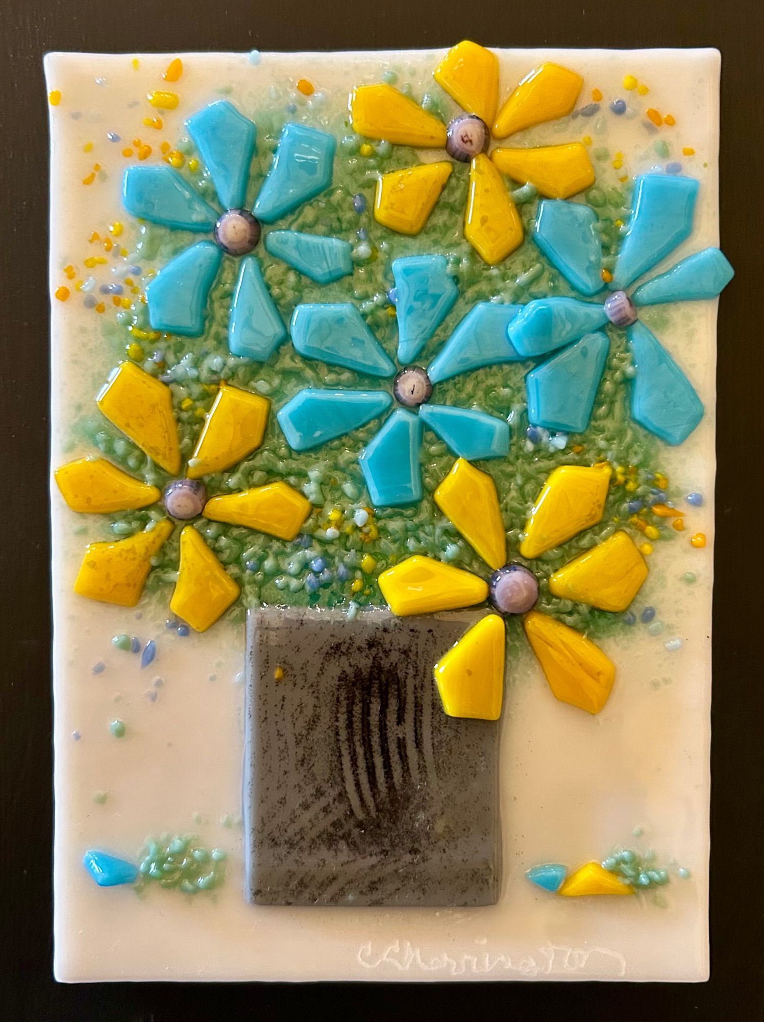 Nothing is better than an arrangement of flowers and these will never die. Mounted on a black panel and ready to hang.
