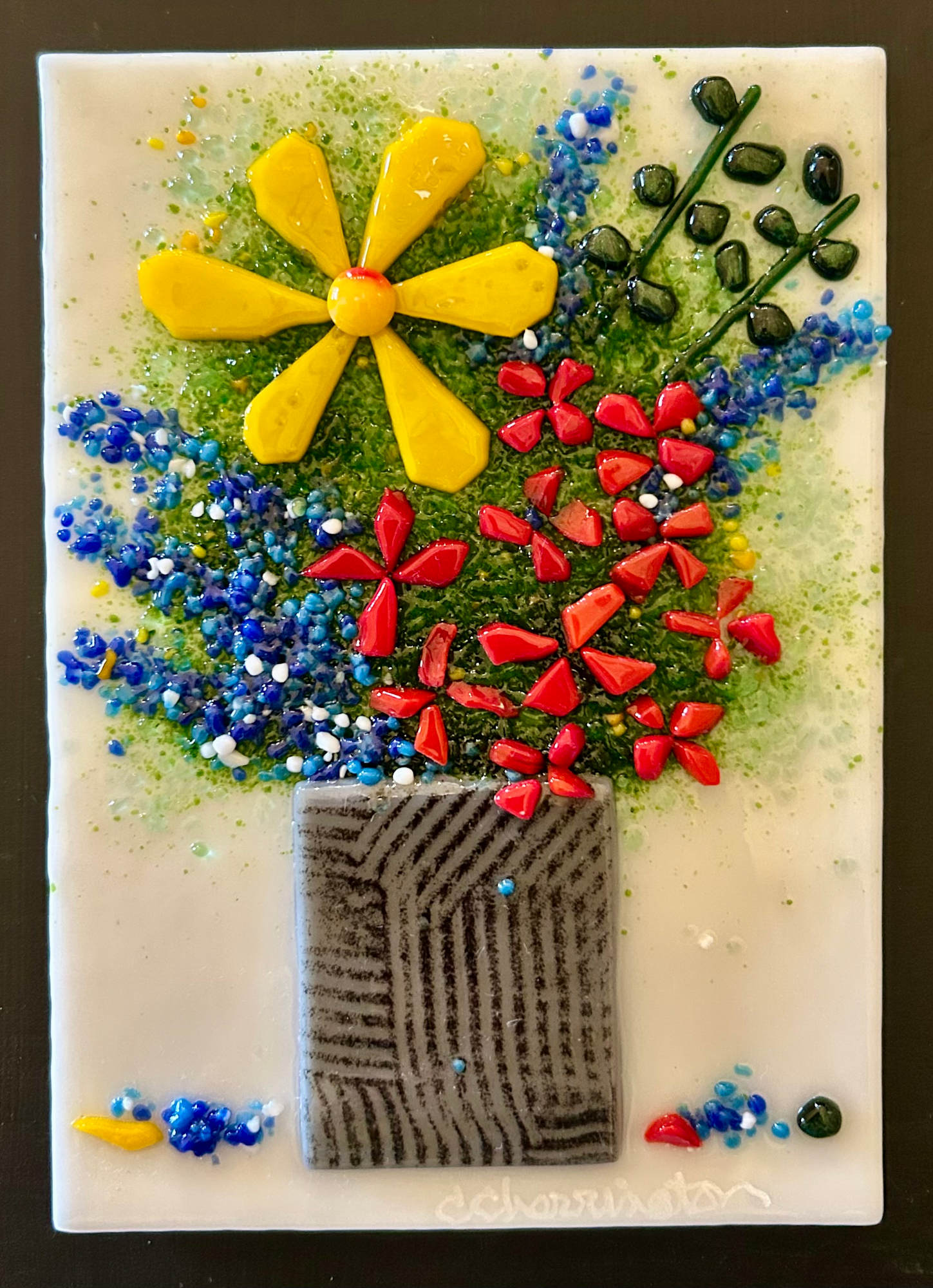 Nothing is better than an arrangement of flowers and these will never die. Mounted on a black panel and ready to hang.