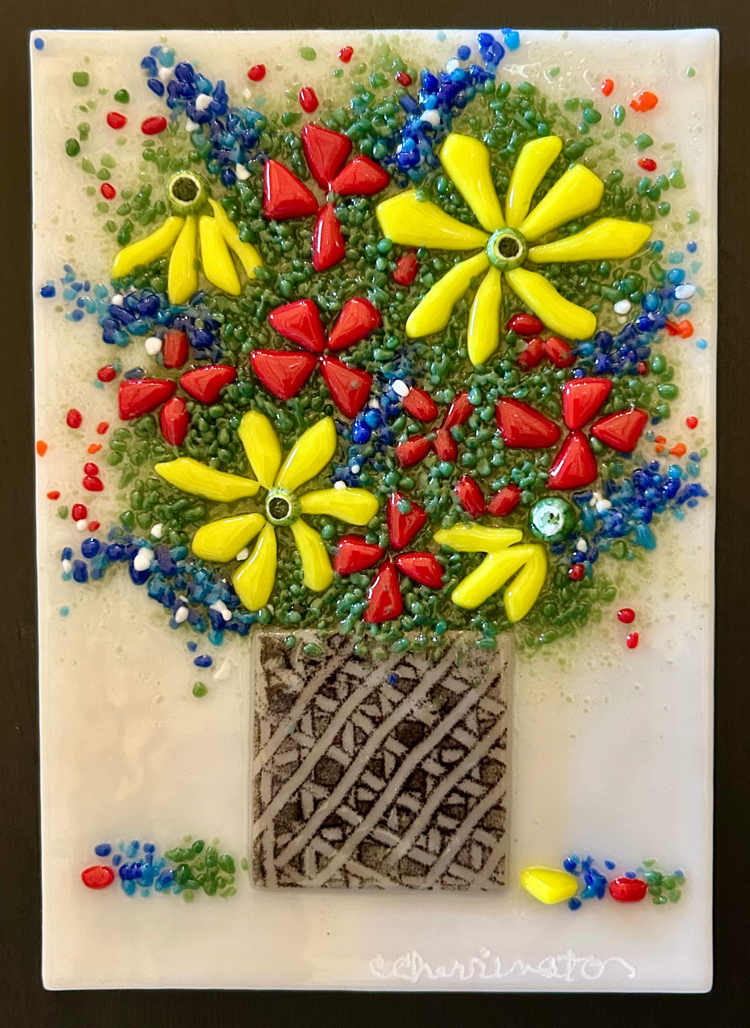 Nothing is better than an arrangement of flowers and these will never die. Mounted on a black panel and ready to hang.