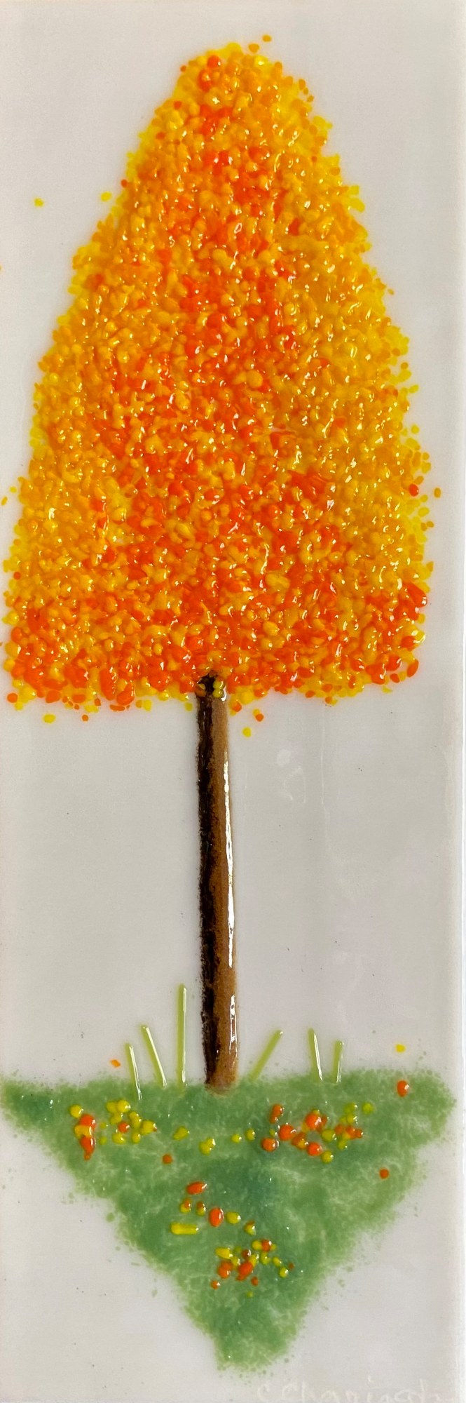 Only using colorful crushed glass (frit) and powder to make this single tree.