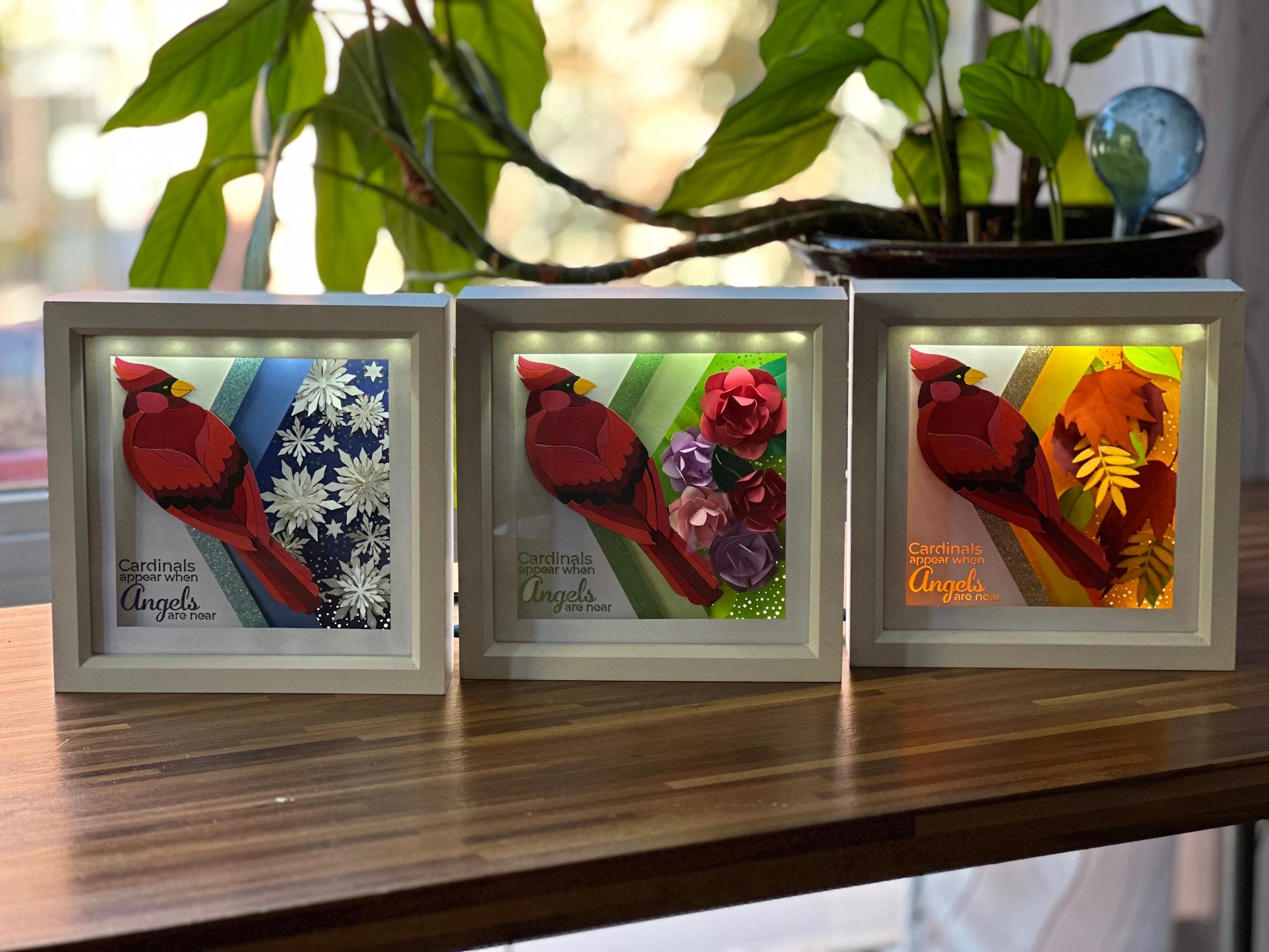 • Dimensional Design: Layered construction, lighting, and cut details give the cardinal a soft, glowing depth that simple prints cannot replicate