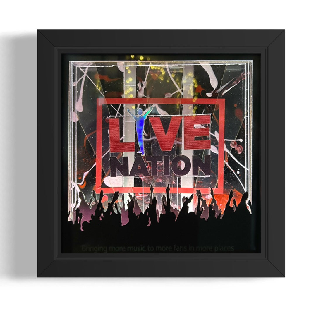 This exclusive dimensional canvas honors Live Nation Entertainment’s position as the world’s leading live entertainment company, celebrating their commitment to creating unforgettable experiences for 150 million fans worldwide .