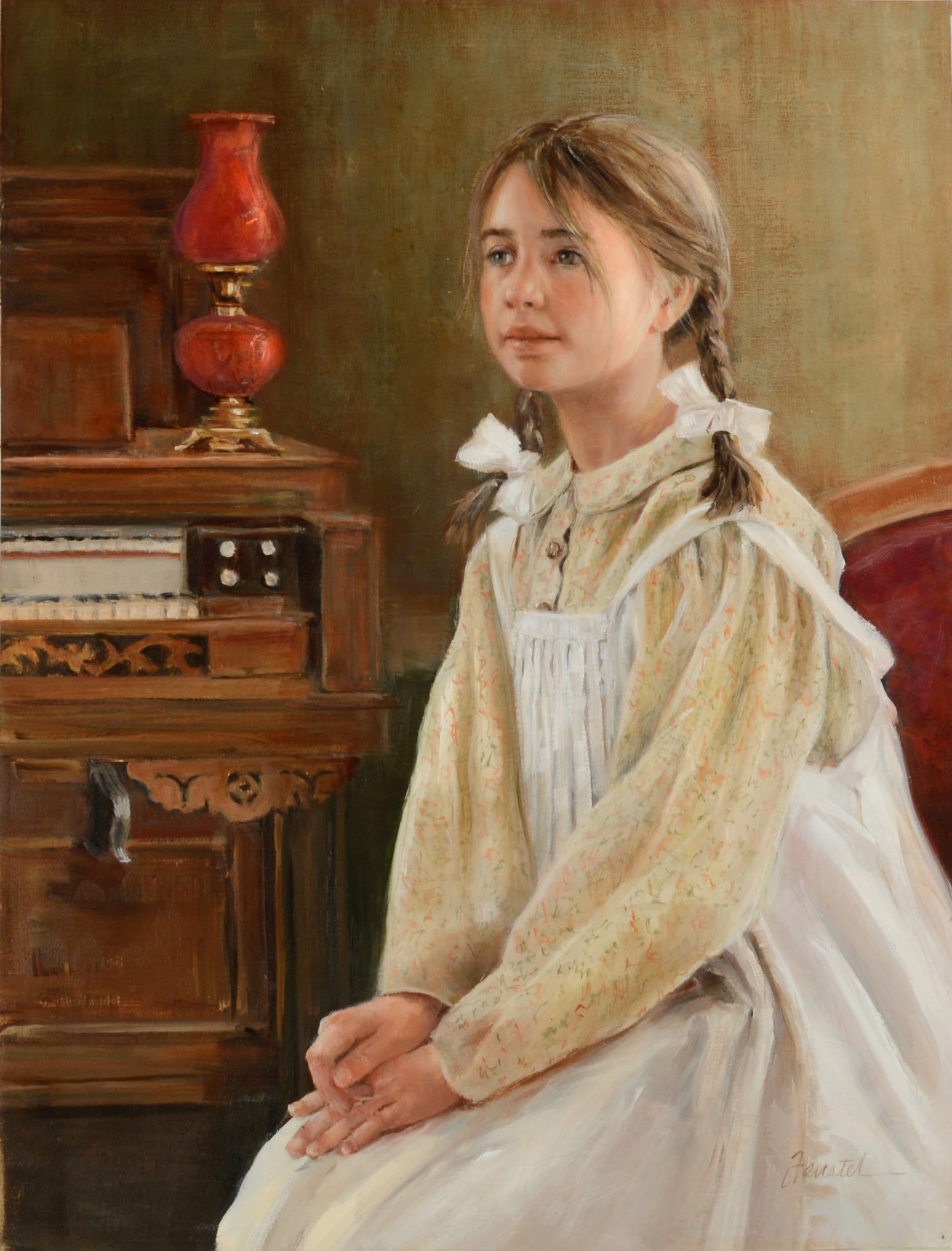 This young girl is patiently waiting for her lesson on the parlor organ. Although set in a different period of time, I could vividly remember my days as a young child taking piano lessons from an elderly woman in her Victorian home. The rooms were dark and there was a slight musty smell of antiques. I always felt like I was somehow magically stepping back in time.