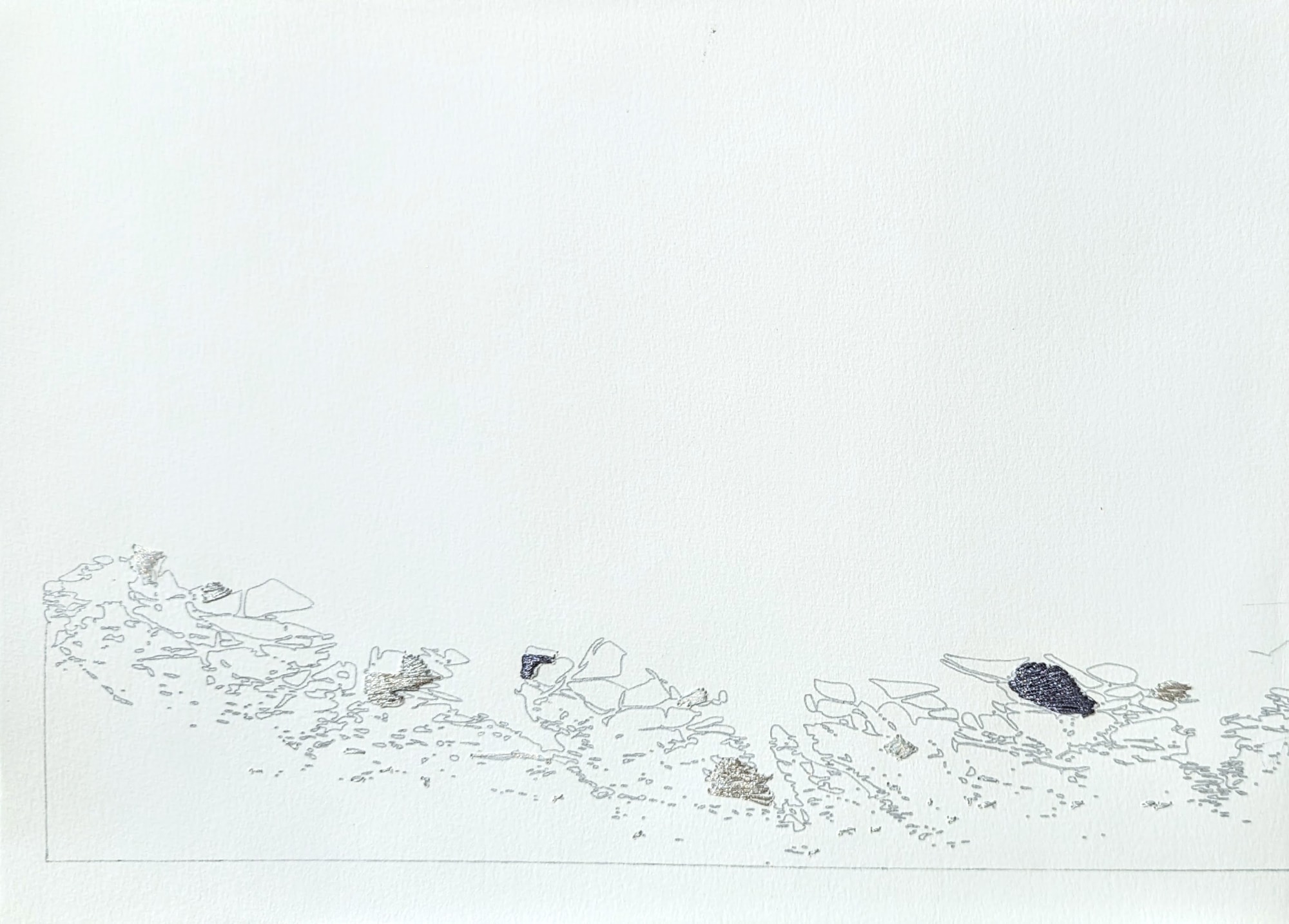 Ink and silver thread on Paper