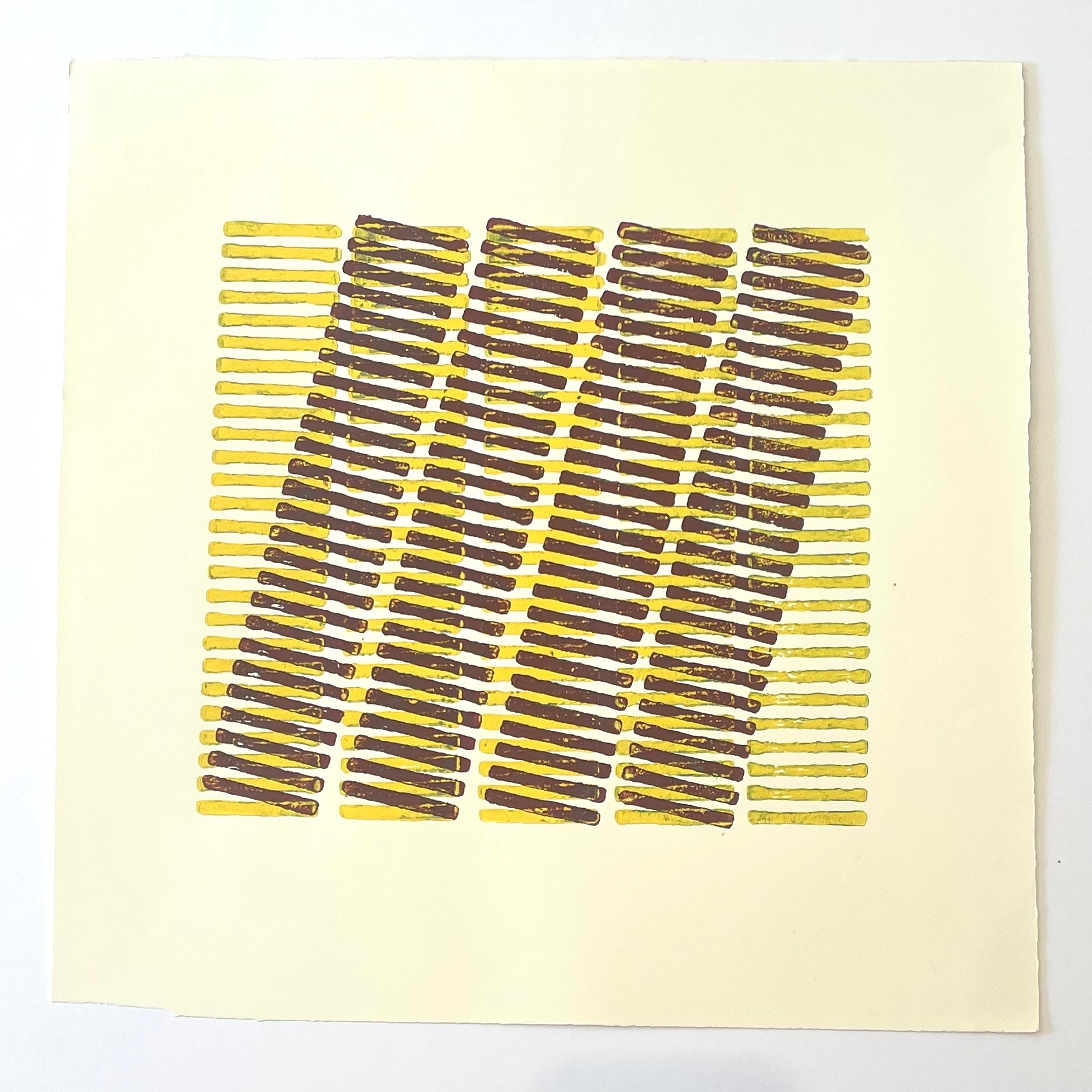 Yellow and burgundy monoprint from the portfolio "16 Moire Studies"