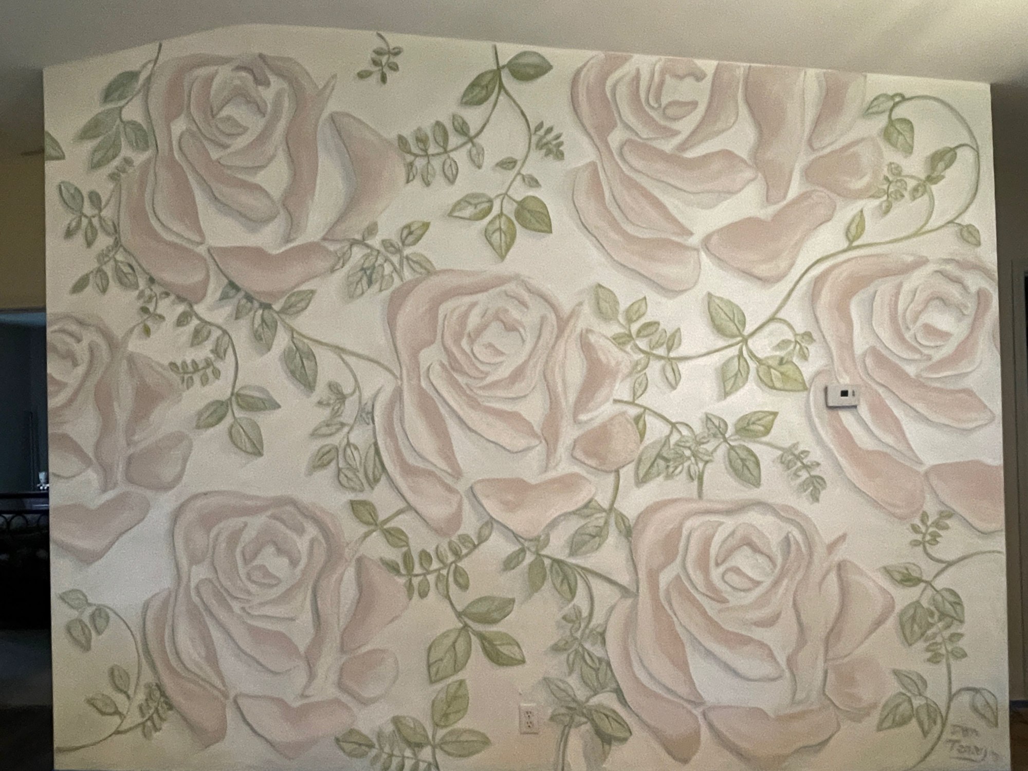 Commissioned work for a private home in San Antonio where client wanted a decorative rose patterned wall as if done in shallow scuptural relief.