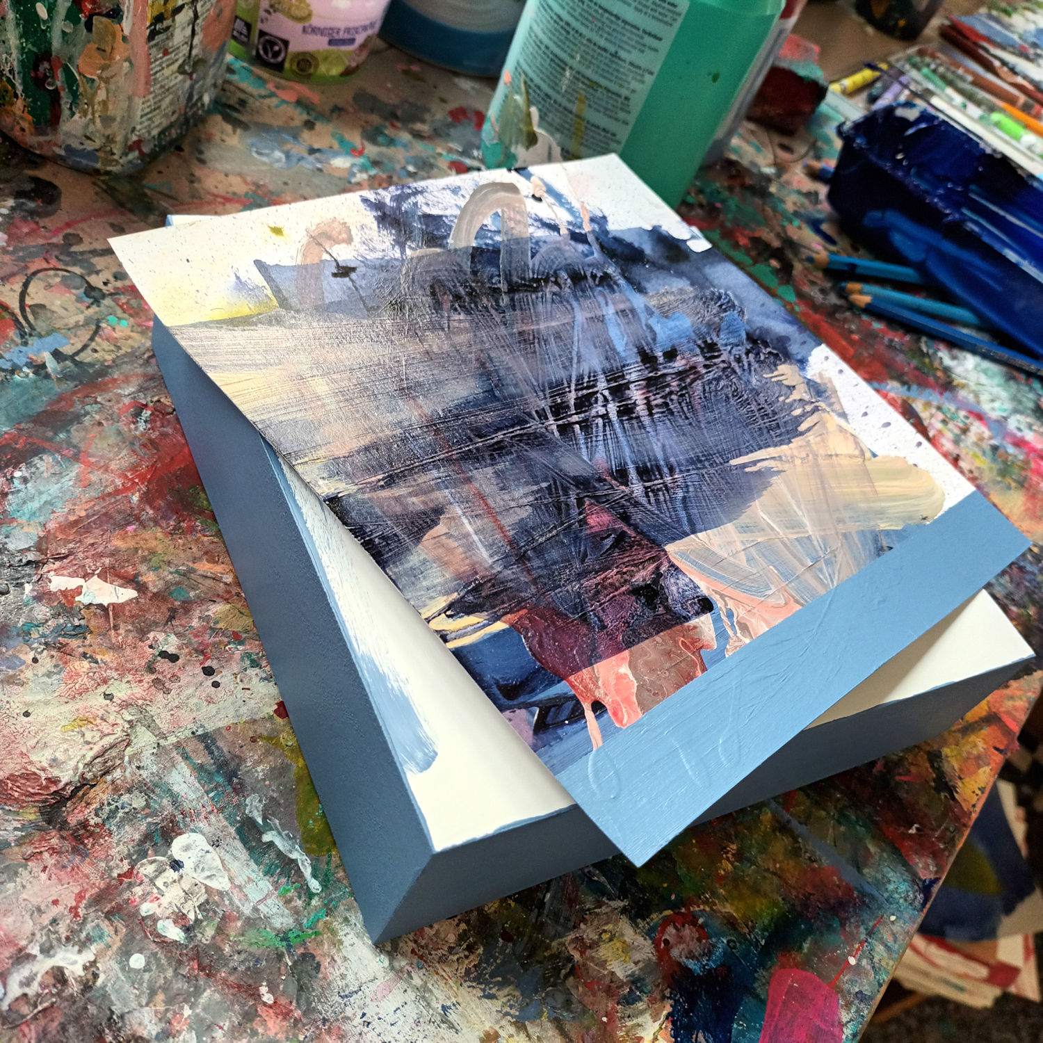 • Mixed Media on Paper on Wood
