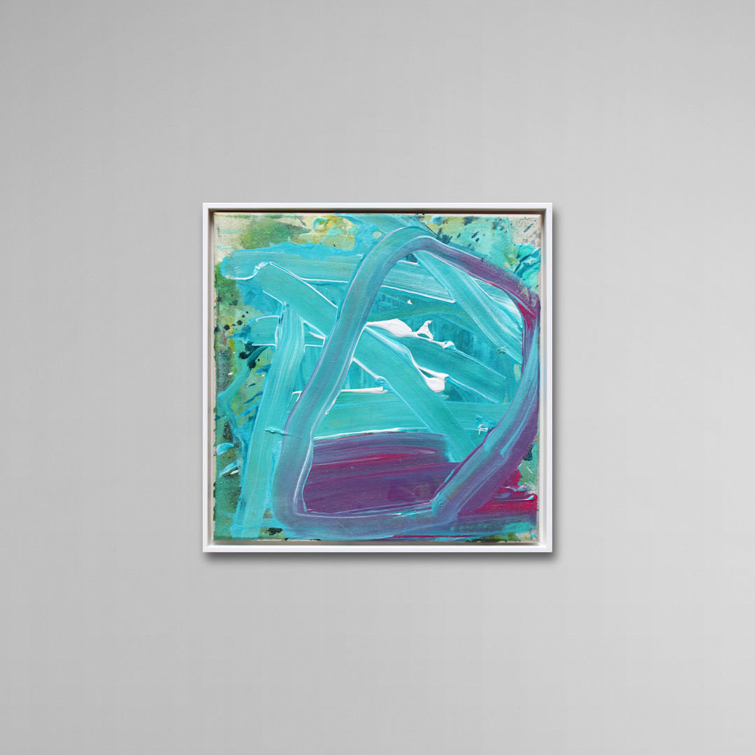 This work thrives on its tactile presence — creamy, physical, full of movement. The paint is applied thickly and generously; brushstrokes are clearly visible and gestural in nature. Turquoise and soft cream tones dominate the composition, interwoven with dynamic lines and flowing transitions that create depth and rhythm.