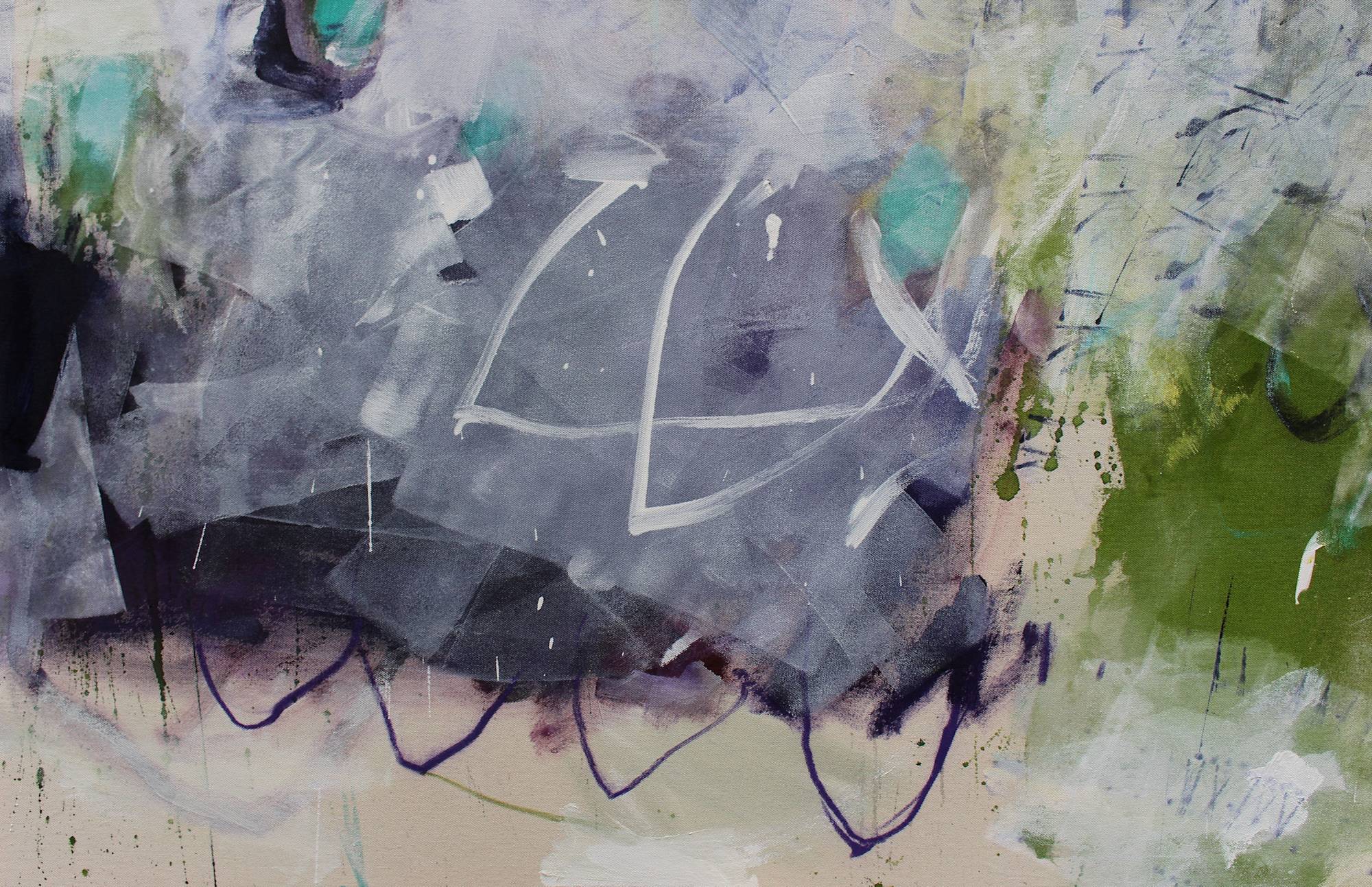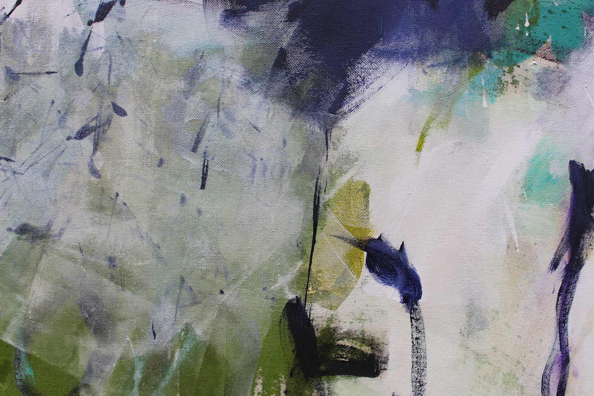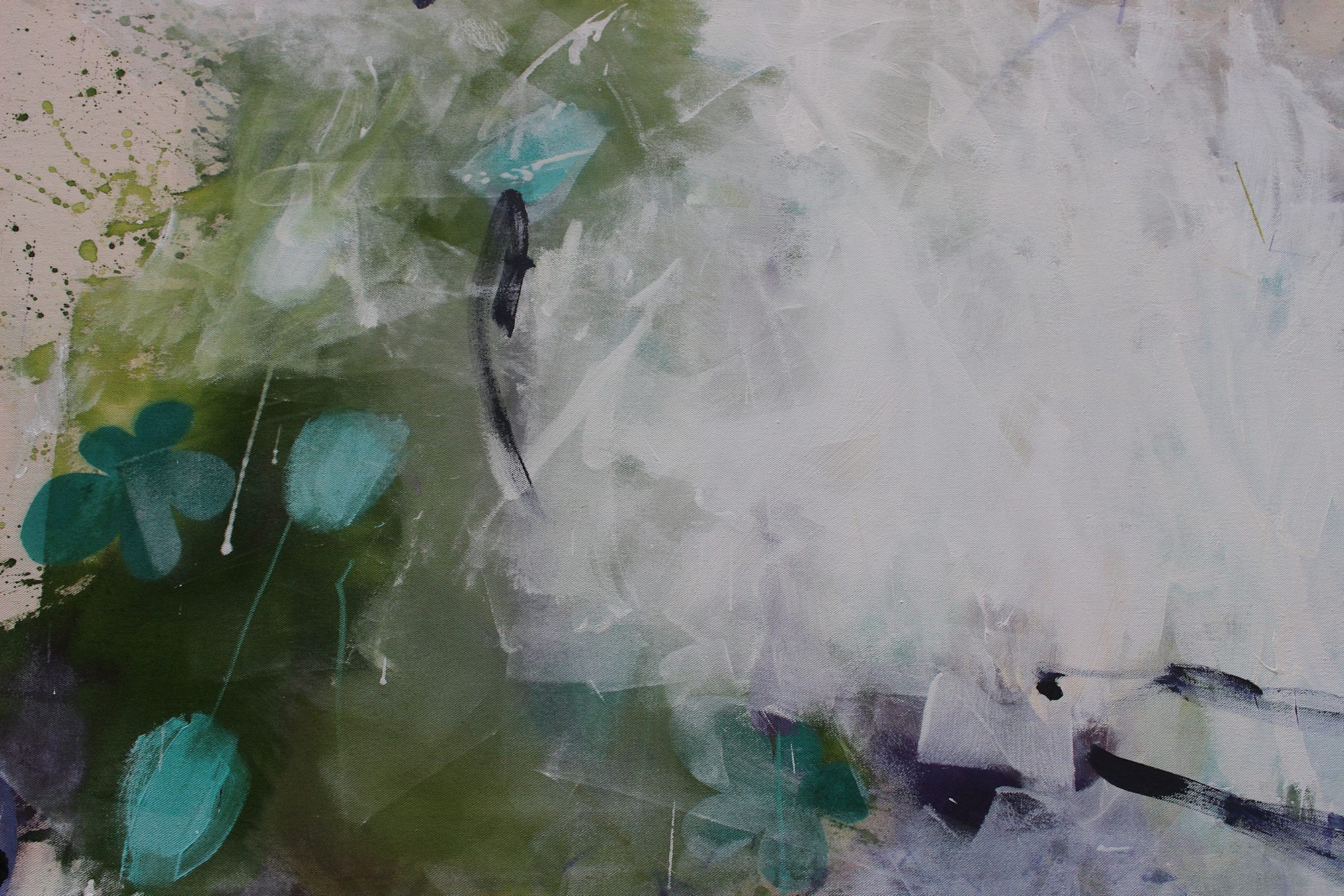 This expressive original painting in large format (190 × 180 cm) thrives on the dynamic interplay of forms and layered color fields. The composition is both intuitive and intentional: upward-reaching floral hints, oval structures, and sweeping lines converge in a tension-filled dialogue of surfaces, brushstrokes, and vibrant accents. Despite the energy conveyed through gestural movement, the work evokes a surprising sense of calm—as if inviting a moment of pause before something new can emerge.