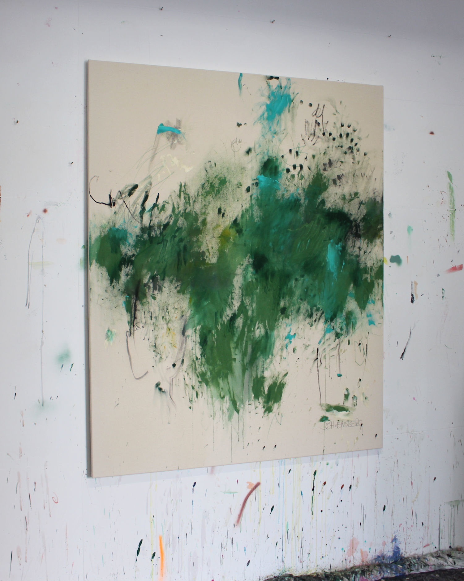 Keywords: daniela schweinsberg, contemporary abstract expressionism, green painting, green abstract, moosgrün, nature-inspired art, original painting, large-format abstract, home design, collect art, gallery backed artist, gestural abstraction