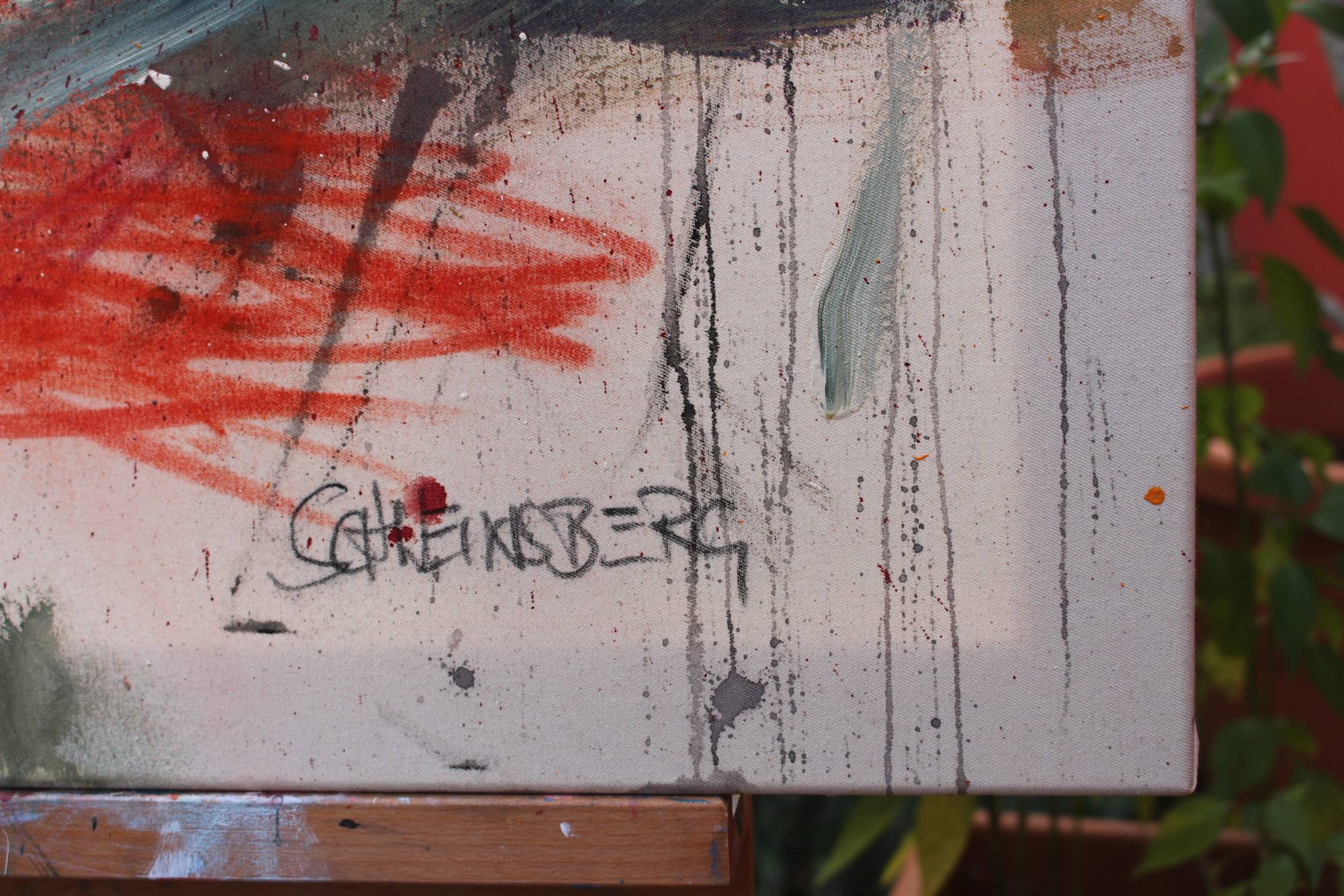 Autumn, abstracted! I still remember vividly how this piece came to life. It was autumn, and the beautiful warm colors of nature found their way onto the canvas. It felt like a tiny universe, as if I were small and looking up, where layers of green from grasses and bushes, and a dense red canopy of leaves formed the sky.