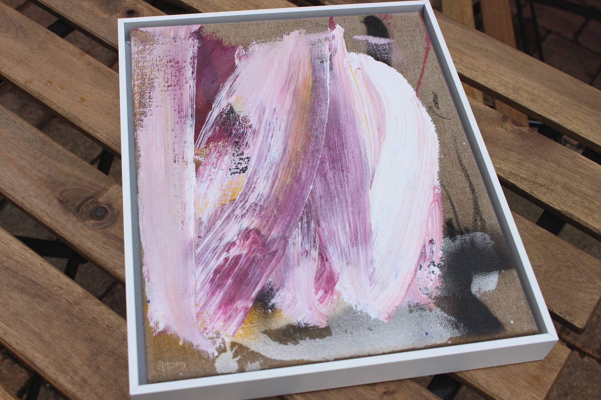 The informal process allowed for intense, gestural brushwork in close quarters. The richness of the mauve, plum, and earthy tones feels comforting, yet the sharp eyecatcher of magenta or red adds an essential spark of life and decisiveness. These pieces prove that expression does not require vast scale; they are small containers for big energy. They're perfect to hang tham in pairs, or in a vibrant group, affirming the very idea that they are what you make of them.