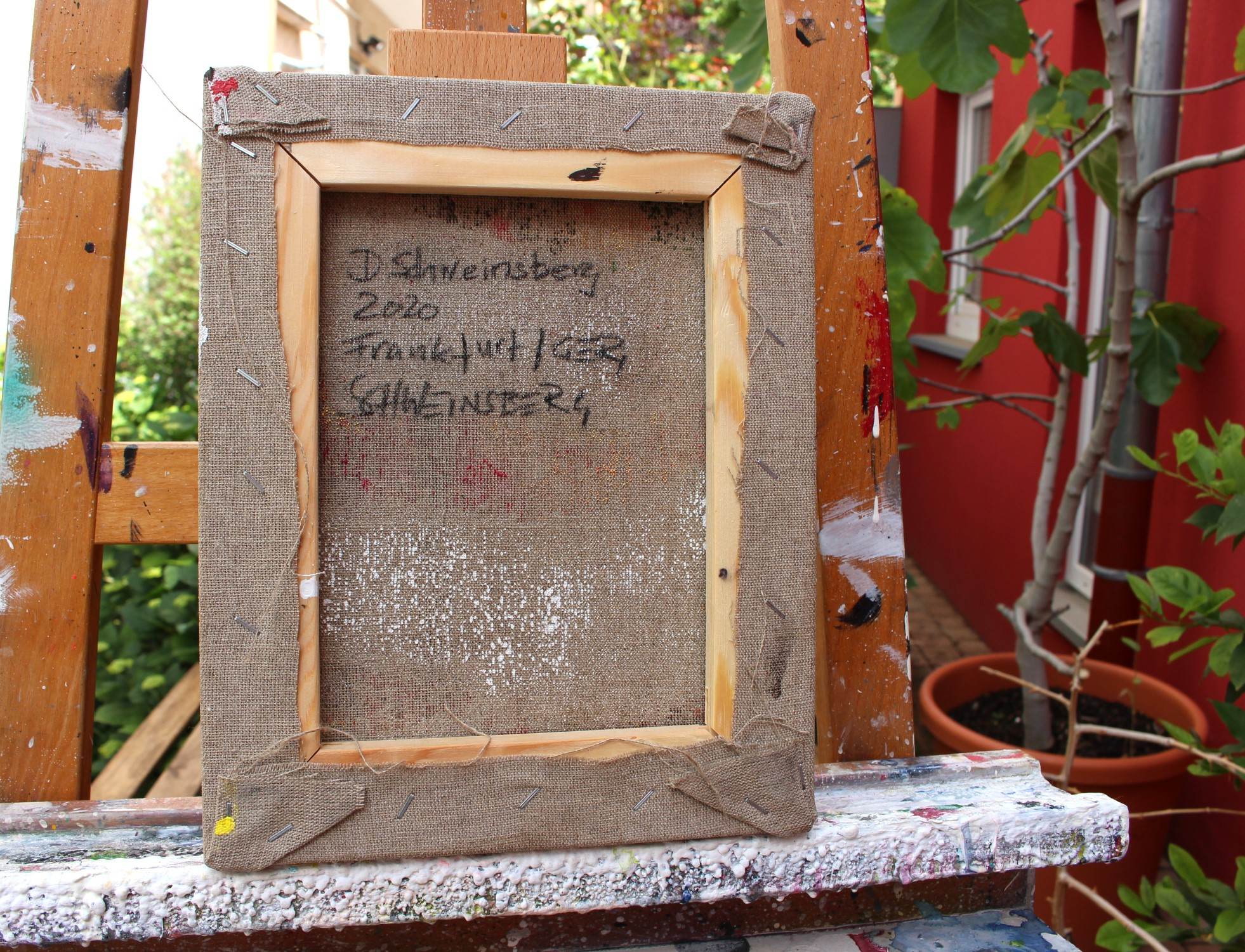 Keywords: daniela schweinsberg, interior designers, wall design, original abstract art, berry color palette, mauve and magenta art, gestural mark making, raw linen art, set of three paintings, miniature abstract, gestural expressionism, textured surface