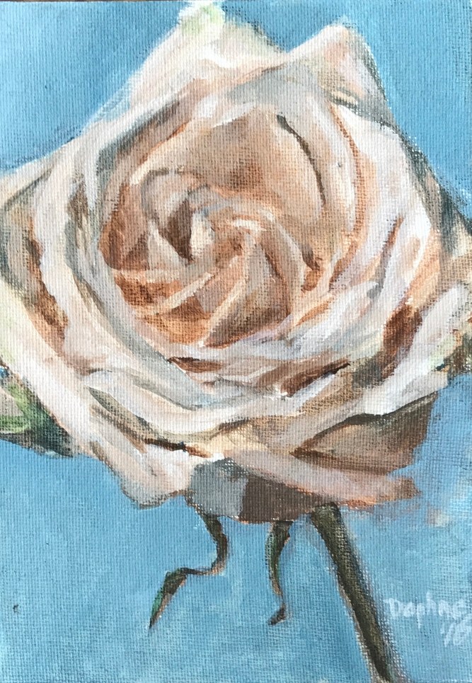 This demo was completed in a floral painting workshop at The Paint Spot in Edmonton, Alberta. Painted with limited palette white, blue and brown.