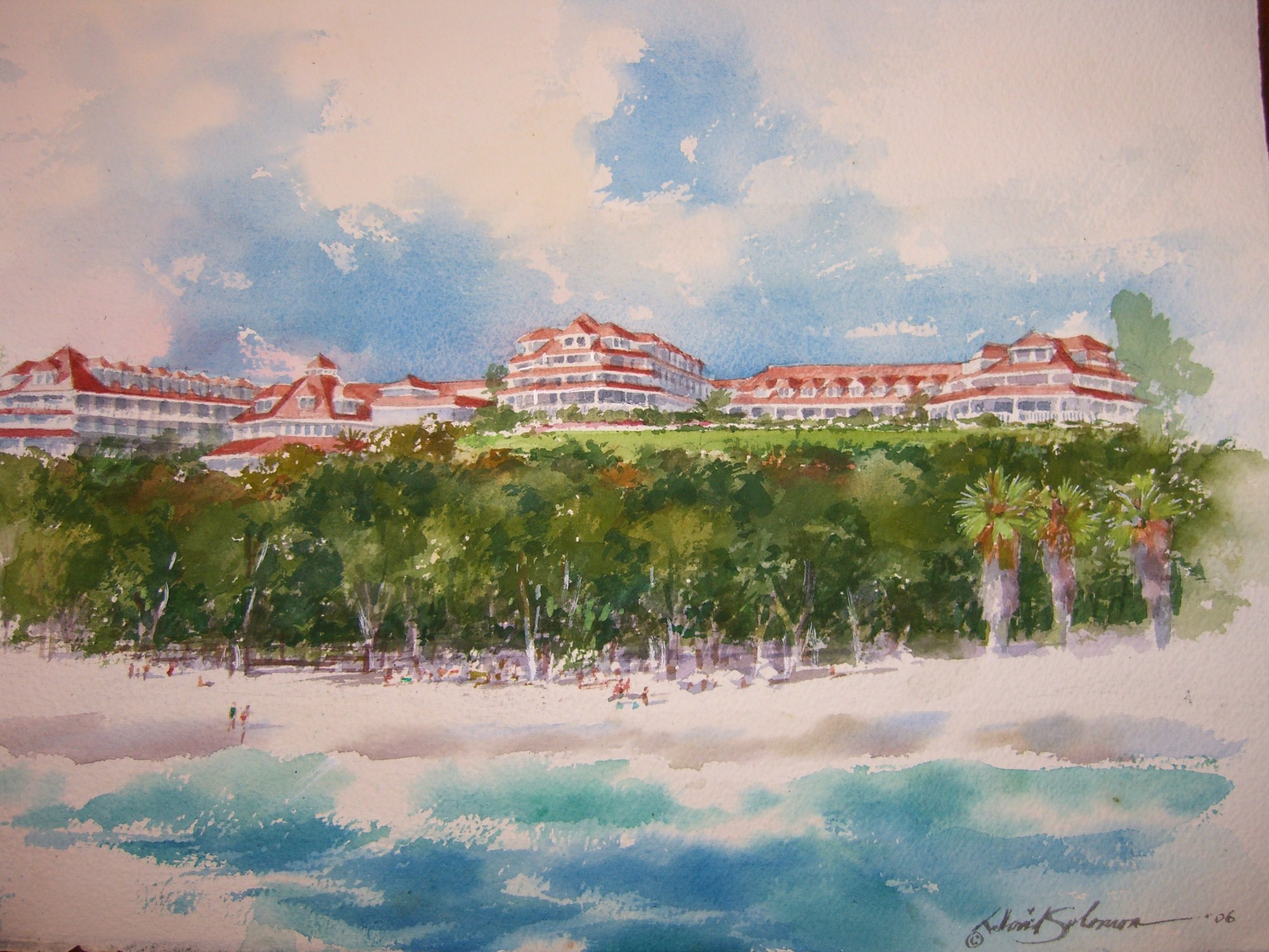 View of Mariott Hotel from Doheny. Painted on location in Dana Point.