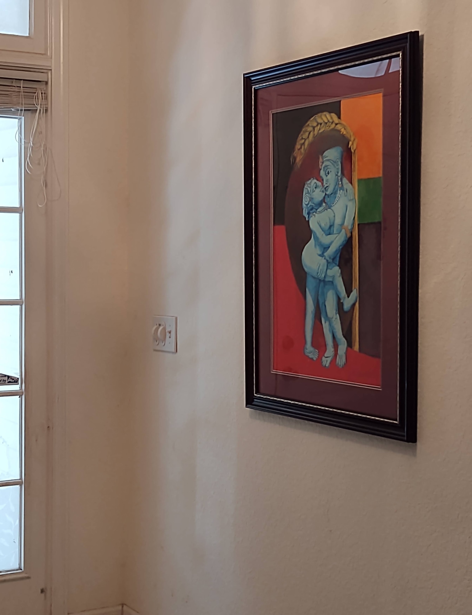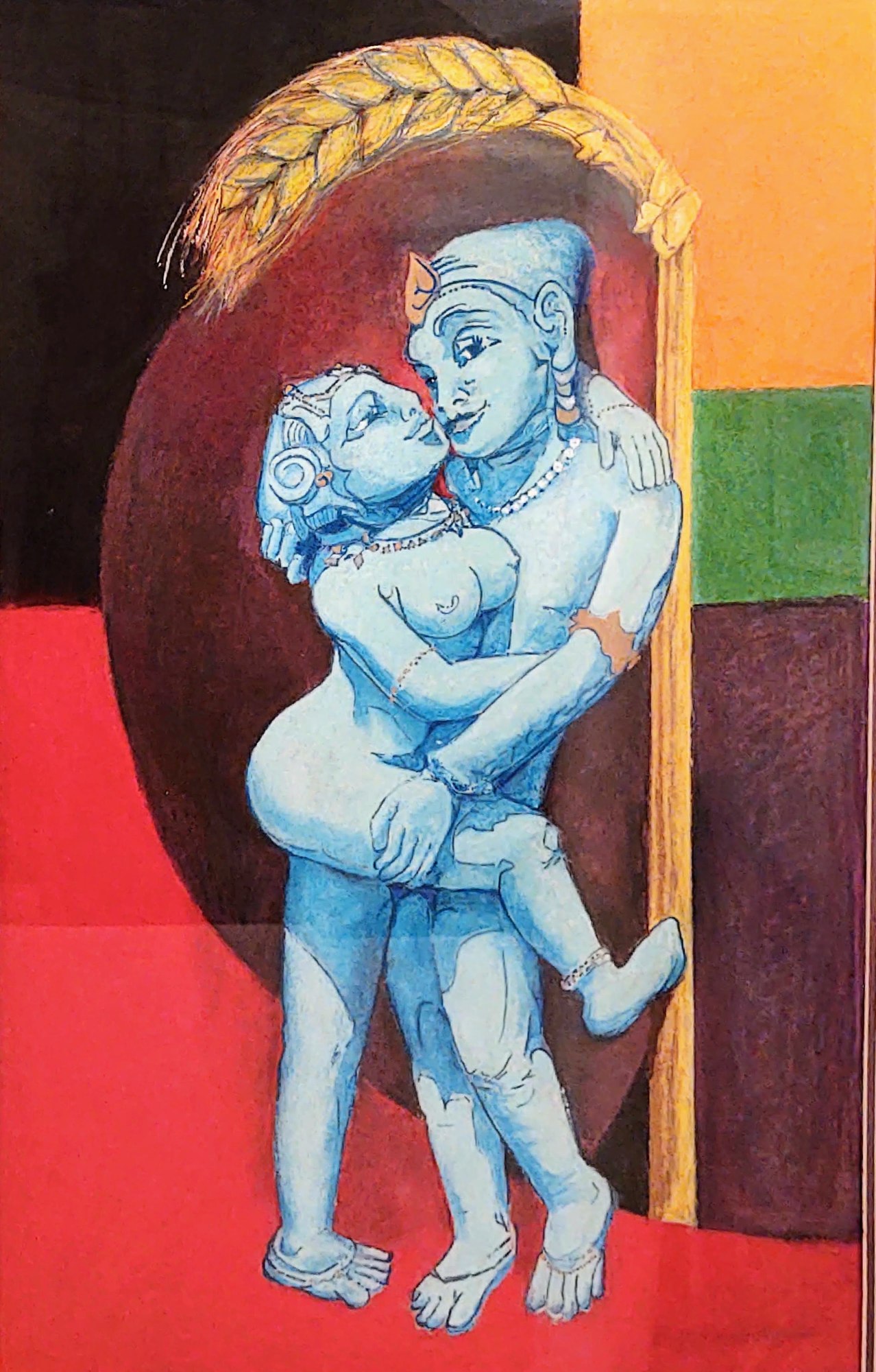 When I turned a corner at the Metropolitan Museum of Art I saw this couple that I had never seen. I drew it on the spot and then promised myself to do something with it. The blue people in India are Gods. I wonder if Picasso had any thoughts about them as he went into his Blue period of painting. The limbs are stocky as in his.