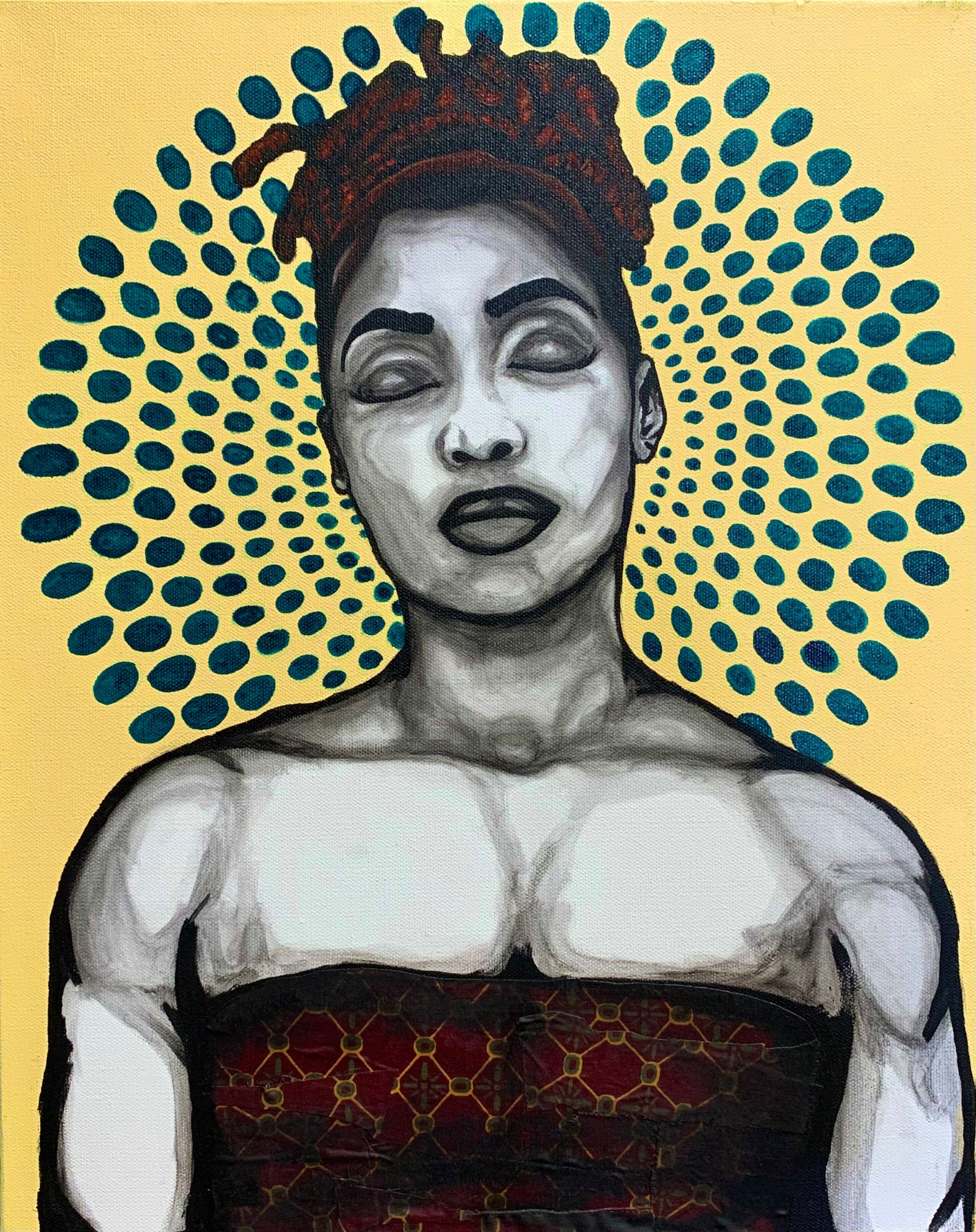 Mixed Media, Acrylic and Inherited Fabric