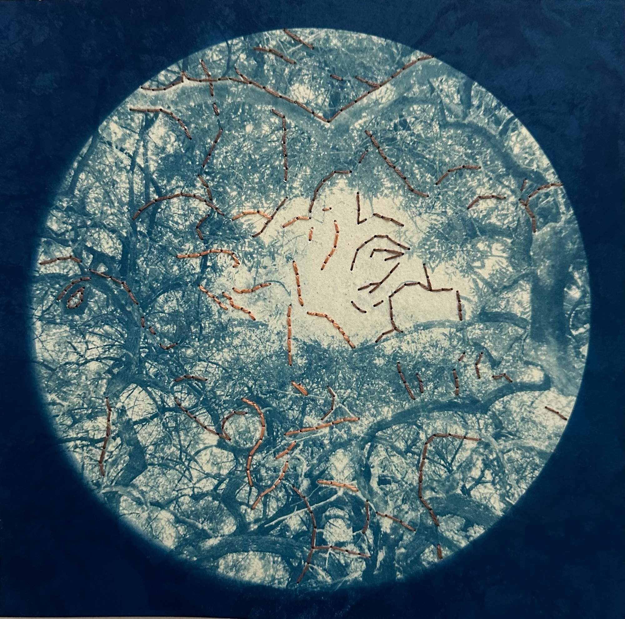 double coated cyanotype with circle