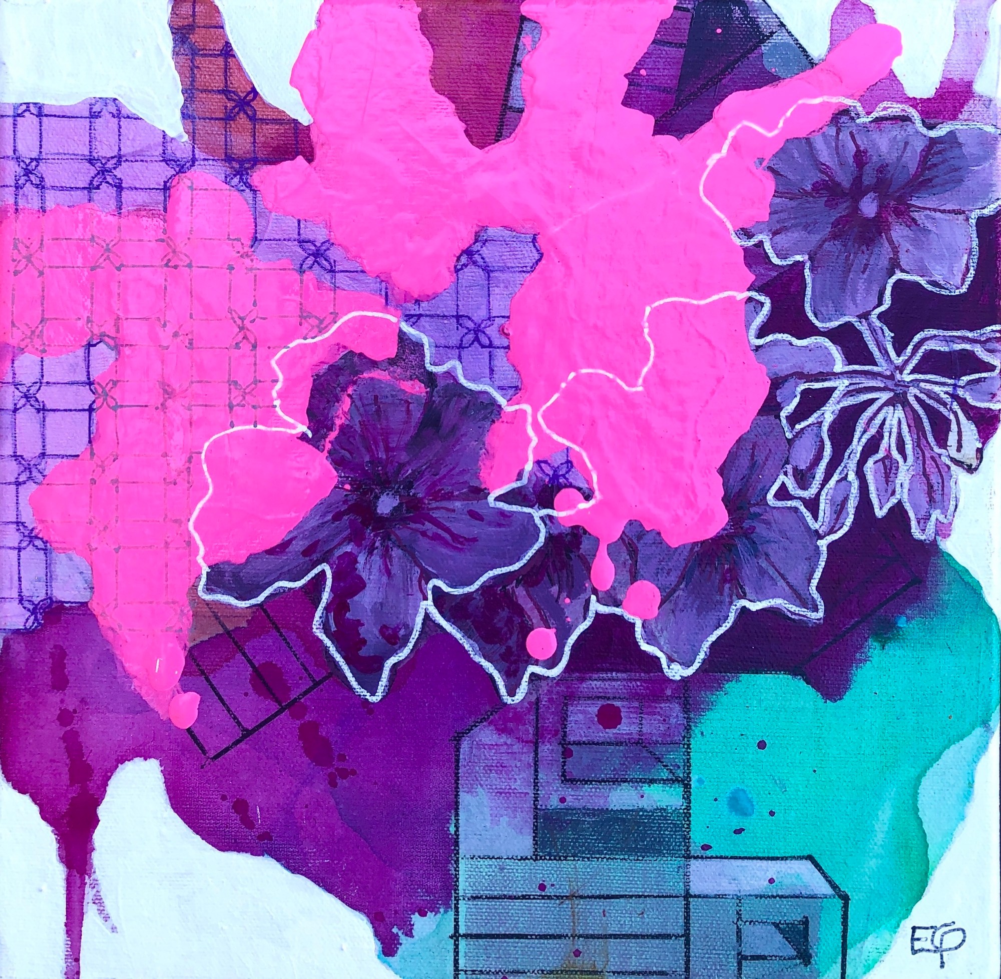 acrylic and ink on canvas, framed