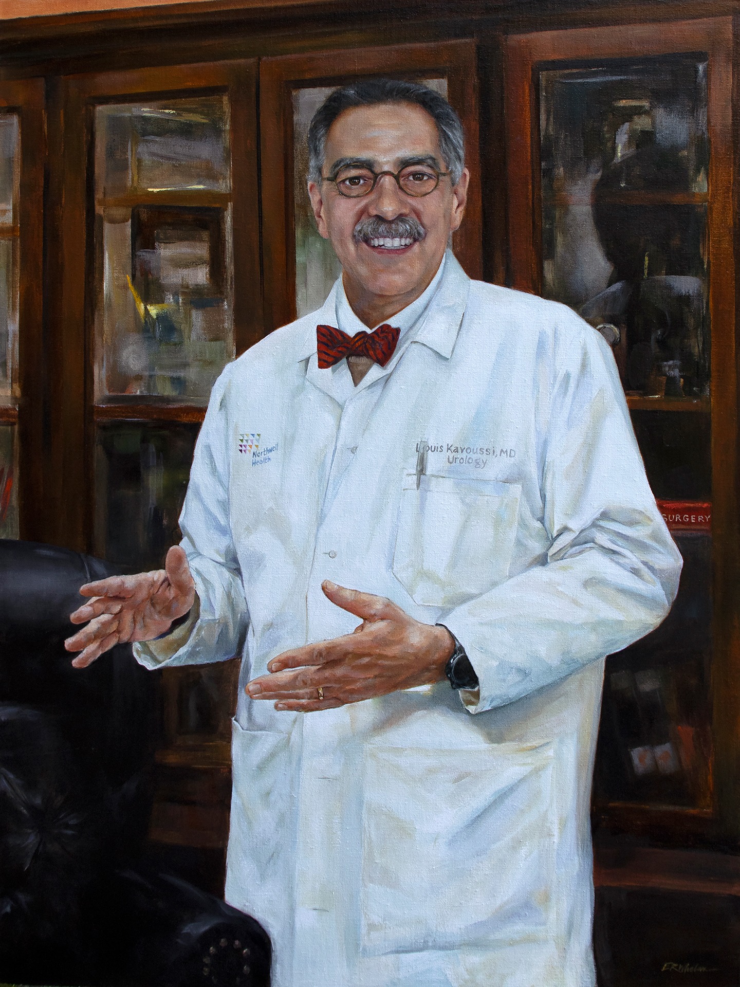 In this portrait of a surgeon and senior Vice President of Urology in Long Island, New York, I looked for opportunities to paint his wonderful character and expressiveness. Highlighting the movement of his hands and his warm expression was key to bringing his nature to life.