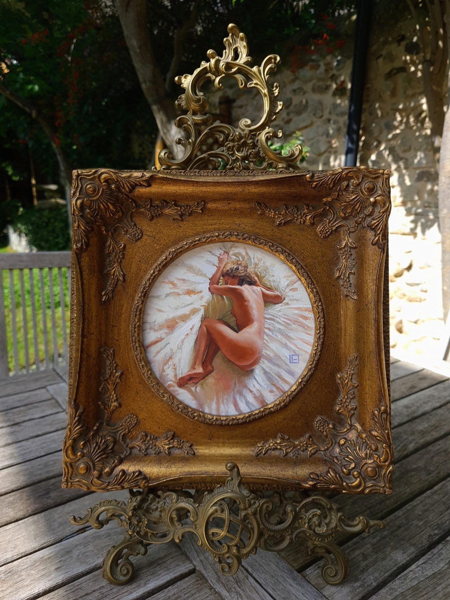 - oil on ACM panel in antique frame