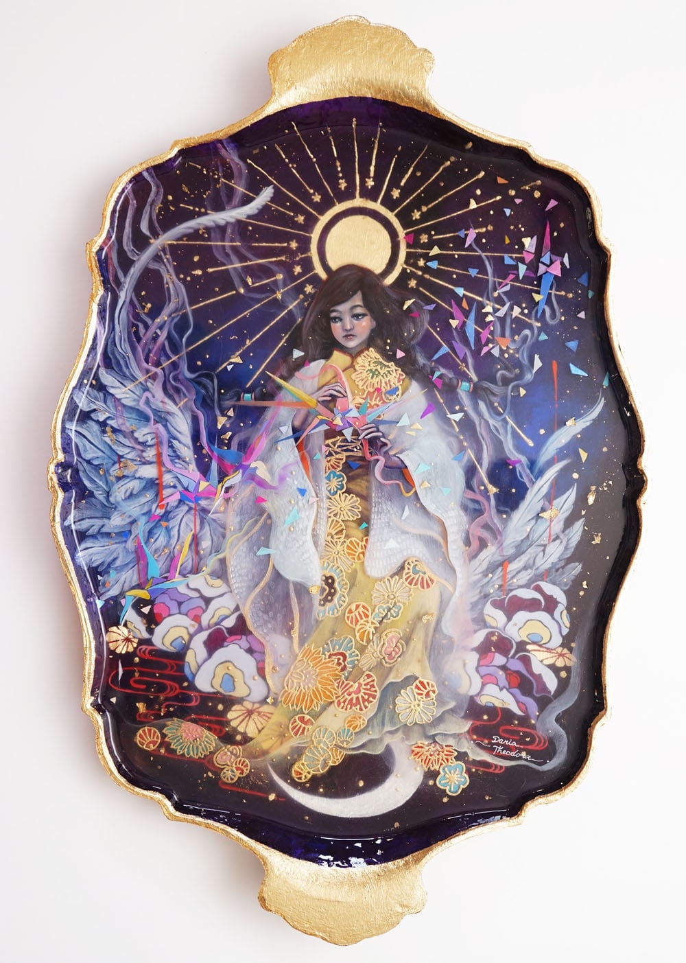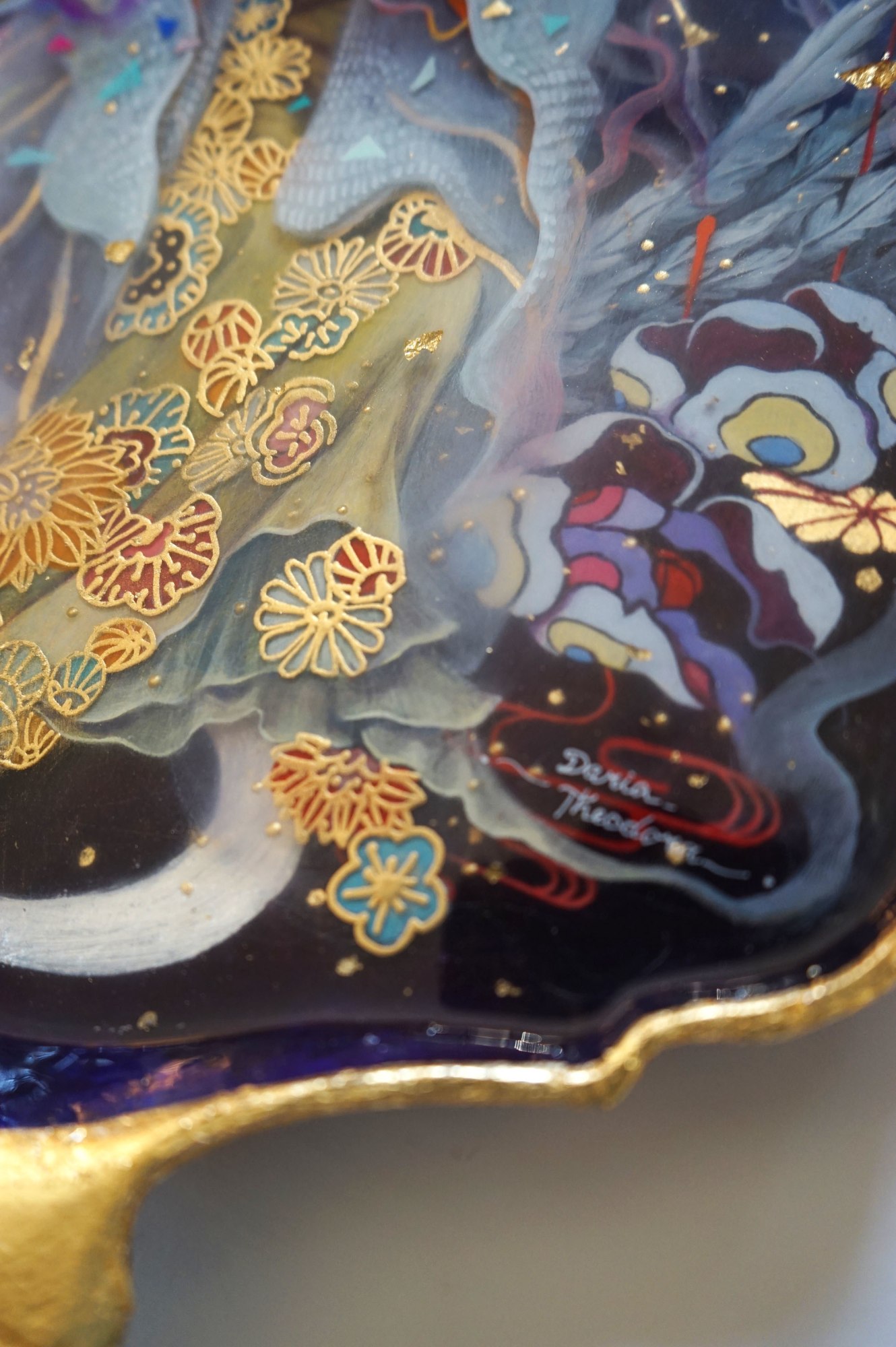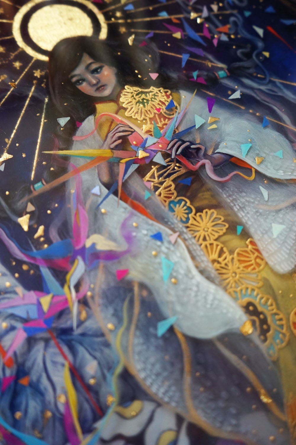 • mixed media, oil, acryla gouache & metal leaf in resin layers