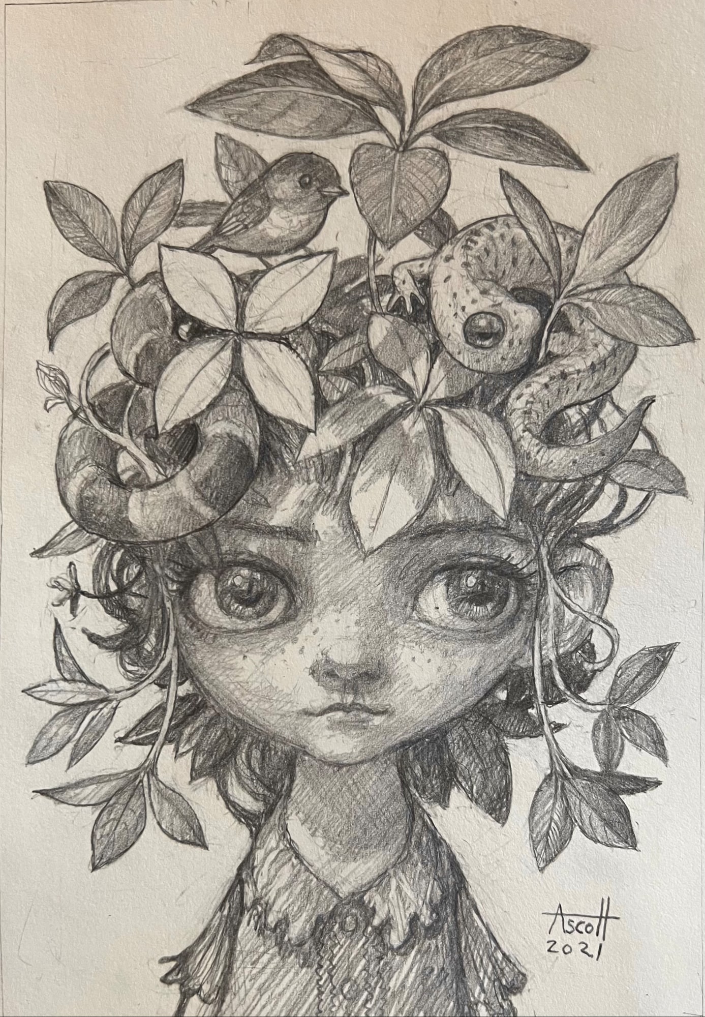 - Subject Matter: dryad, snake, salamander, bird