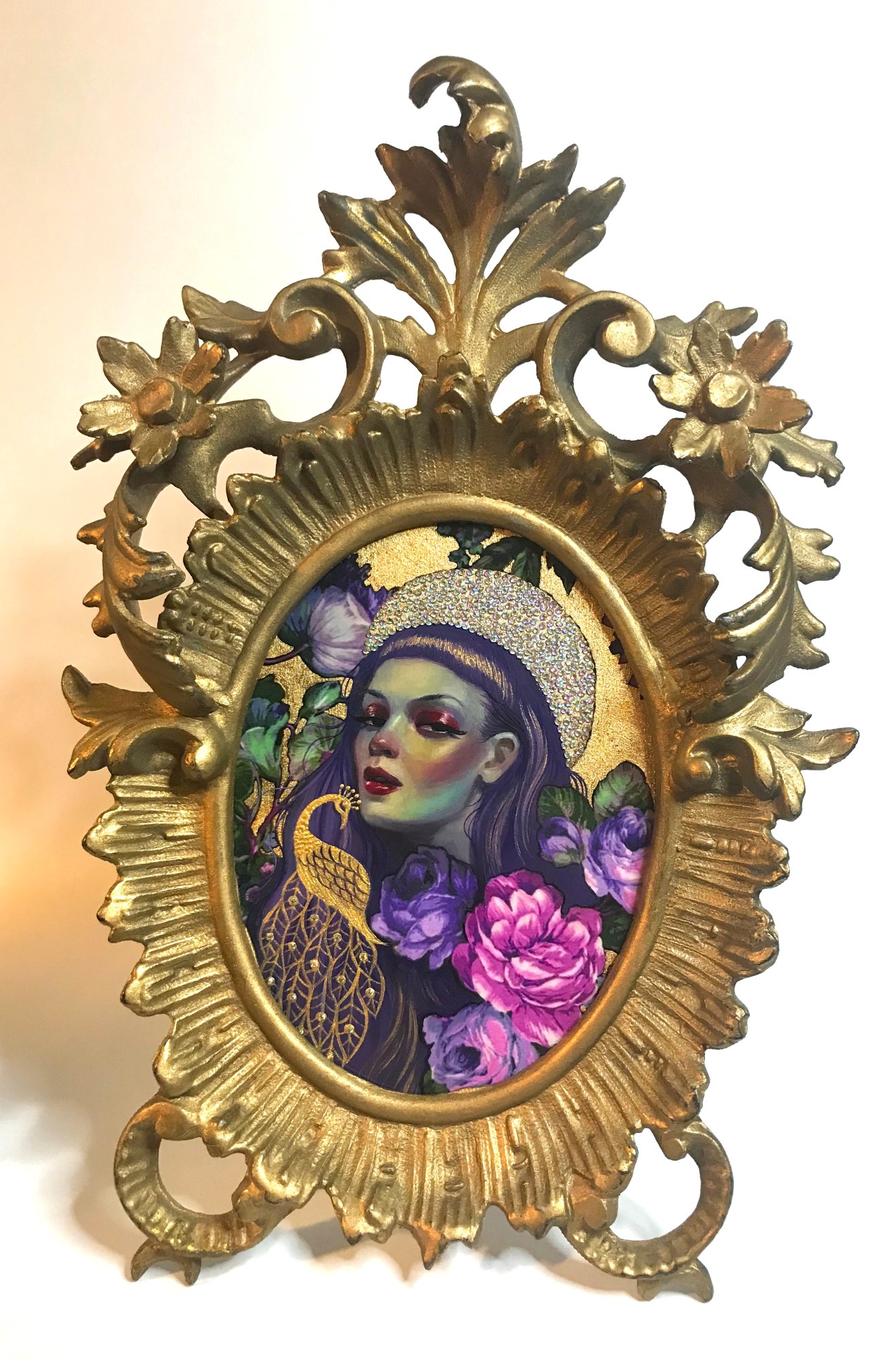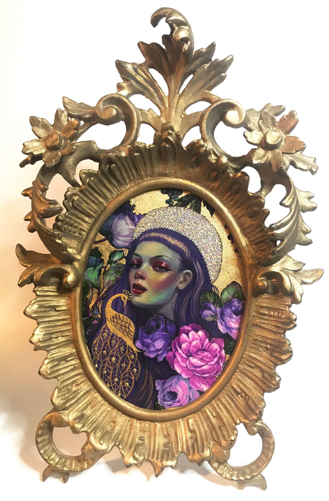• Oil, rhinestones on paper