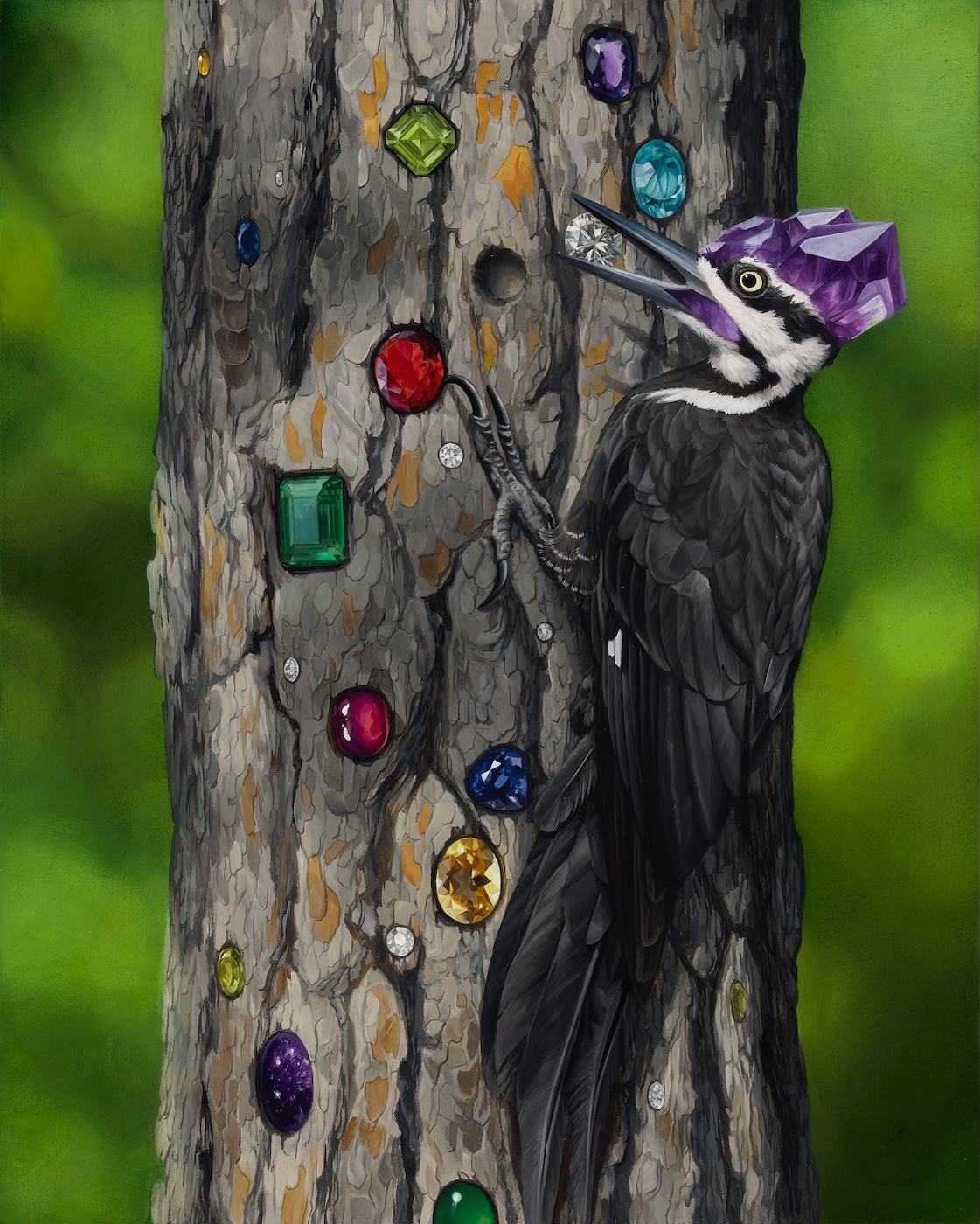 - Subject Matter: woodpecker, gemstones, nature