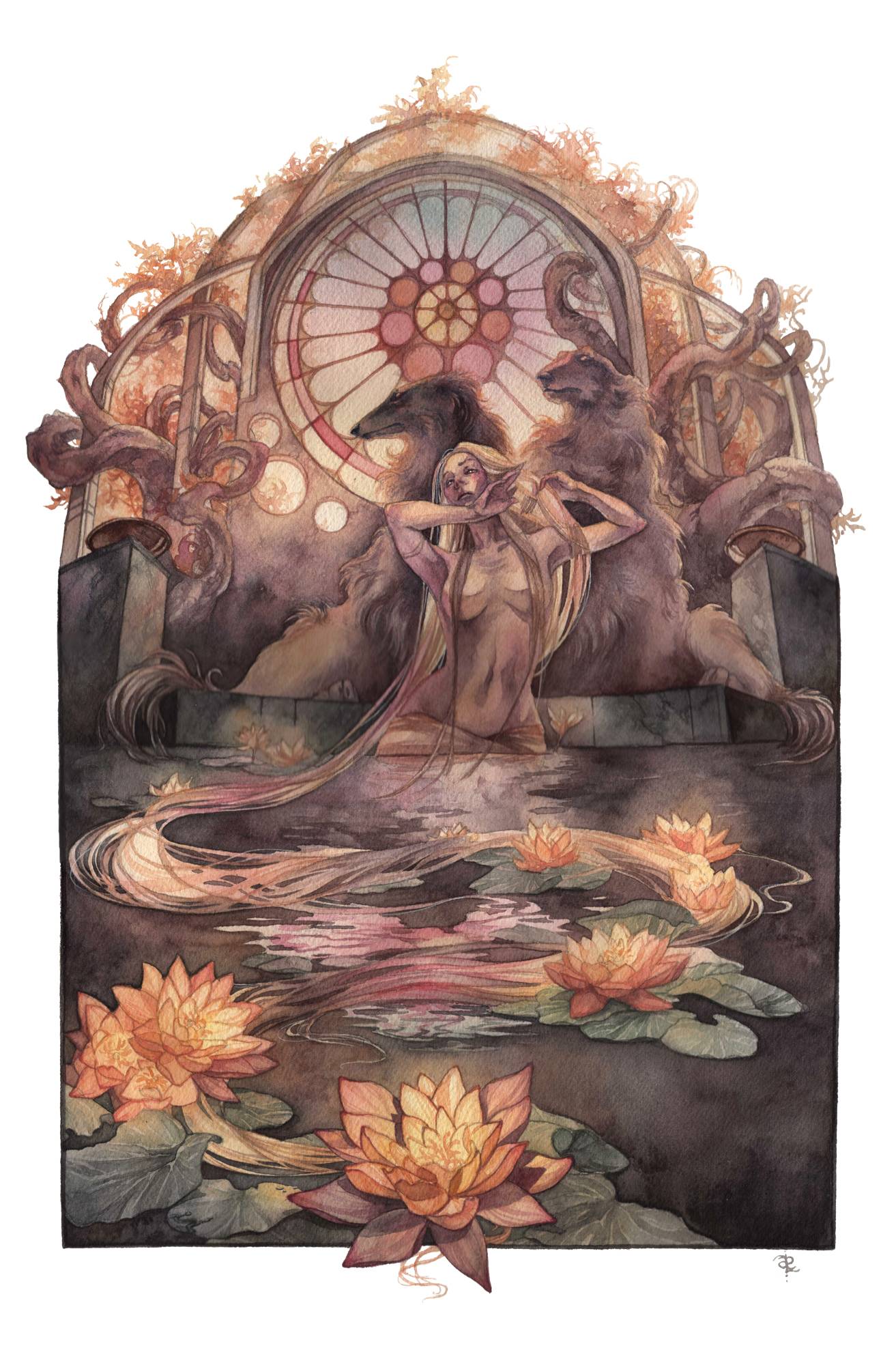 • Watercolor and white ink on 140 lb Arches Cold Press Paper