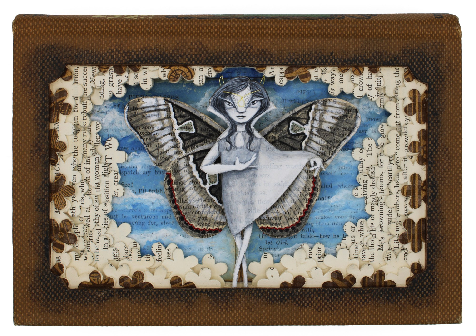 - Hand cut altered book inside altered book, acryla gouache, watercolor, thread, wire, wax