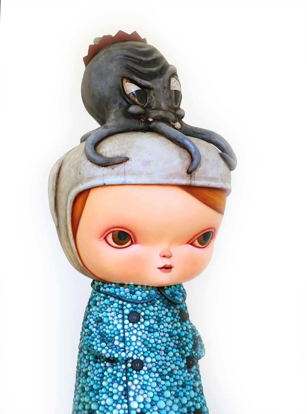 Young Elizabeth, encrusted in blue and indigo armor, is a symbol of protection and introspective journeys. Her familiar, Fernando, sits atop her head and serves as navigator.