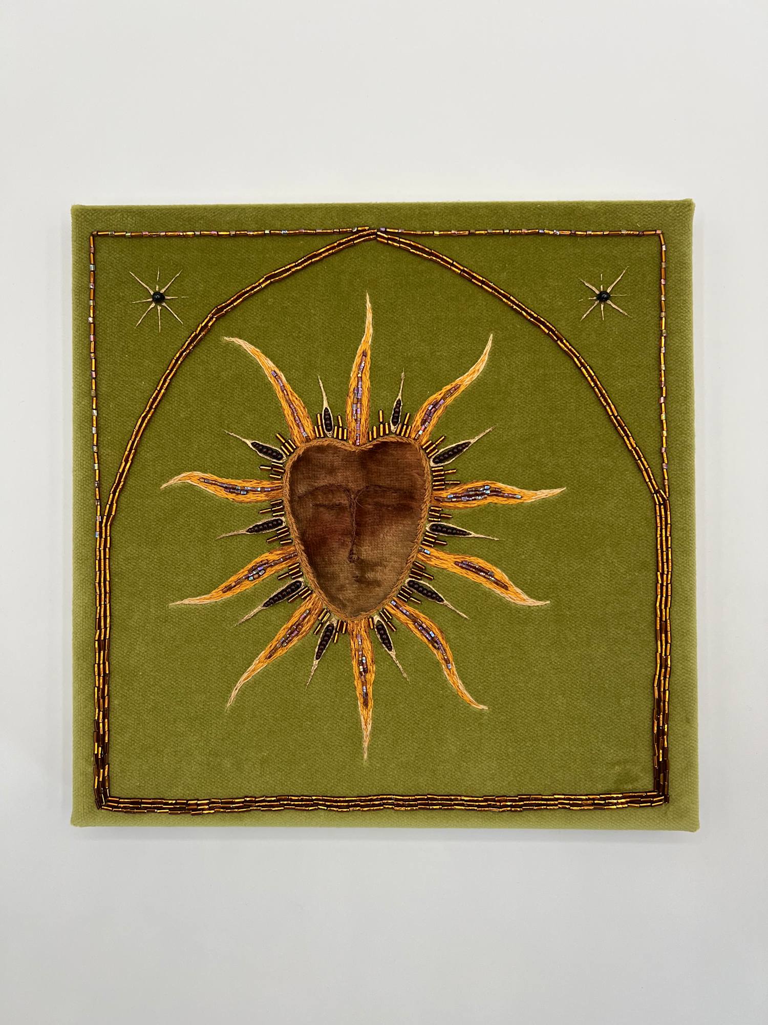• Hand embroidery and beading on cotton velvet with elements of antique textile