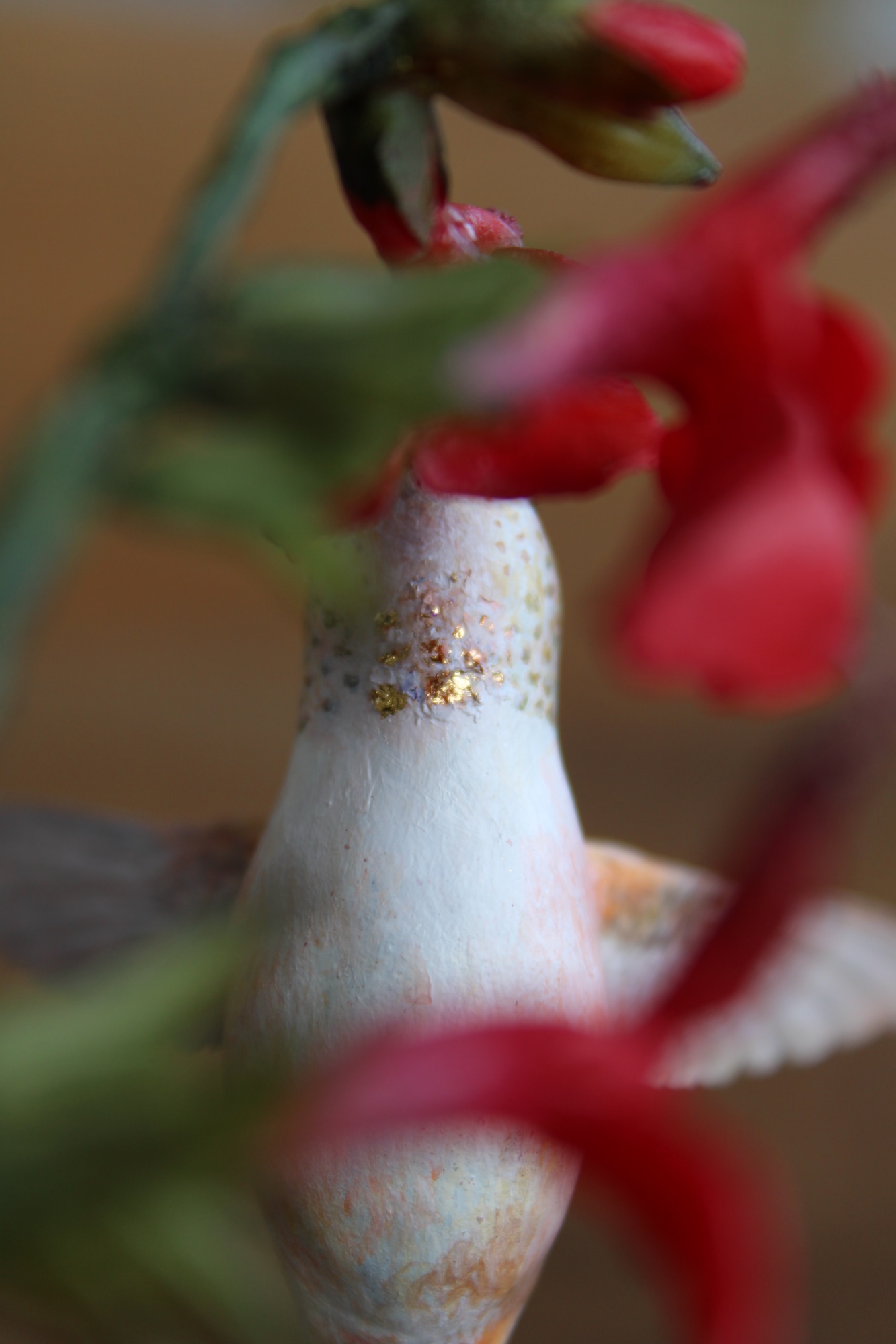 • Polymer clay, paper, acrylic paint, wire, wood base