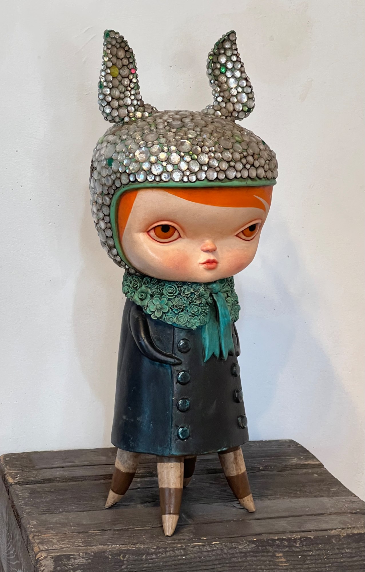 - Oil, acrylic, epoxy resin, found objects on cast resin
